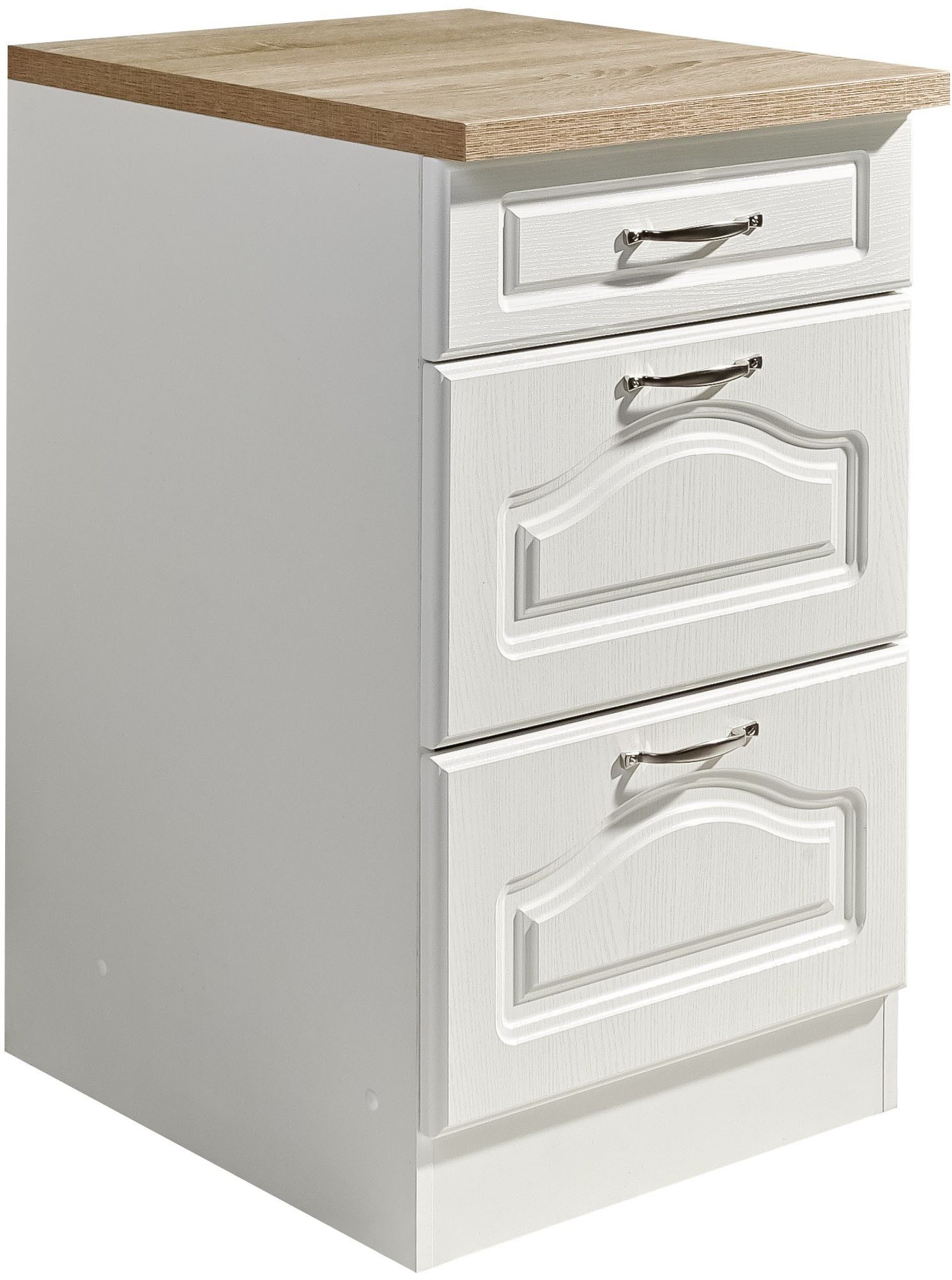 Ergänzende Maßangaben | Schubladenzargenhöhe jeweils: 7 cm Sockelhöhe (10 cm) nicht in der Höhe verstellbar |