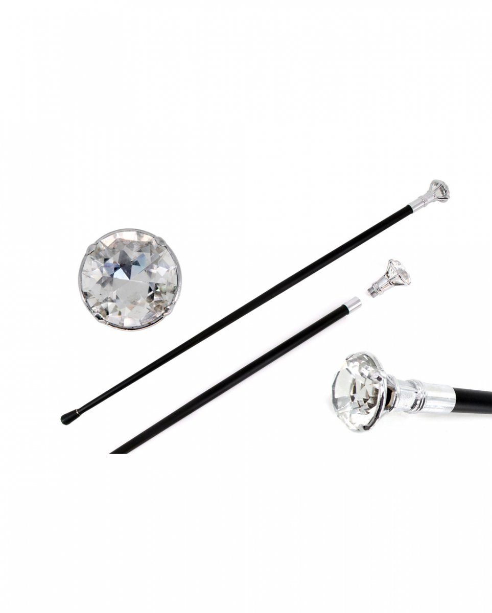 Lieferumfang: 1 x Schwarzer Gehstock mit Diamantknauf aus Glas 93 cm