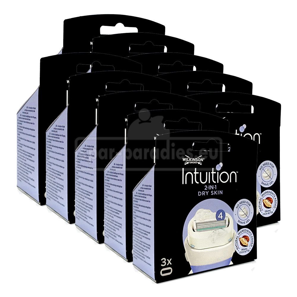 Die Wilkinson Sword Intuition Dry Skin Rasierklingen sorgen für eine schonende und gründliche Rasur auch für trockene Haut. Das 4-Klingen-Rasiersystem passt sich durch den Schwingkopf perfekt den Konturen des weiblichen Körpers an. Dabei verringern Schutzbügel das Risiko von Hautirritationen sowie Schnittverletzungen. Ein sanfter Hautconditioner umgibt die 4 Klingen. Sobald dieser mit Wasser in Kontakt kommt, beginnt er sich aufzuschäumen. Eine Vorbehandlung mit Rasiergel oder Rasierschaum ist daher nicht notwendig. Gleichzeitig verleiht der Conditioner der Haut die frische von Kokosmilch, Mandelöl und Kakaobutter.