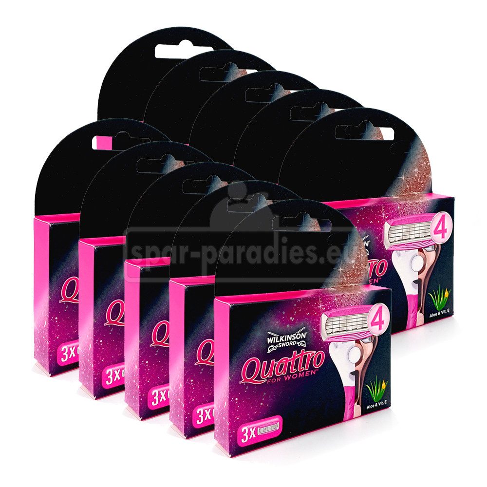 Für die sanfte Rasur für Frauen sorgen die Wilkinson Sword Quattro for Women Rasierklingen. Die ultrafeinen 4-fach Klingen überzeugen durch Ihre Gründlichkeit. Zusätzlich versorgt der Feuchtigkeitsstreifen die Haut mit Aloe Vera und Vitamin E. Das beruhigt die Haut und macht sie samtig weich. Der bewegliche Schwingkopf passt sich unterschiedlichsten Hautkonturen ohne Probleme an und sorgt damit für eine angenehme und gründliche Rasur.