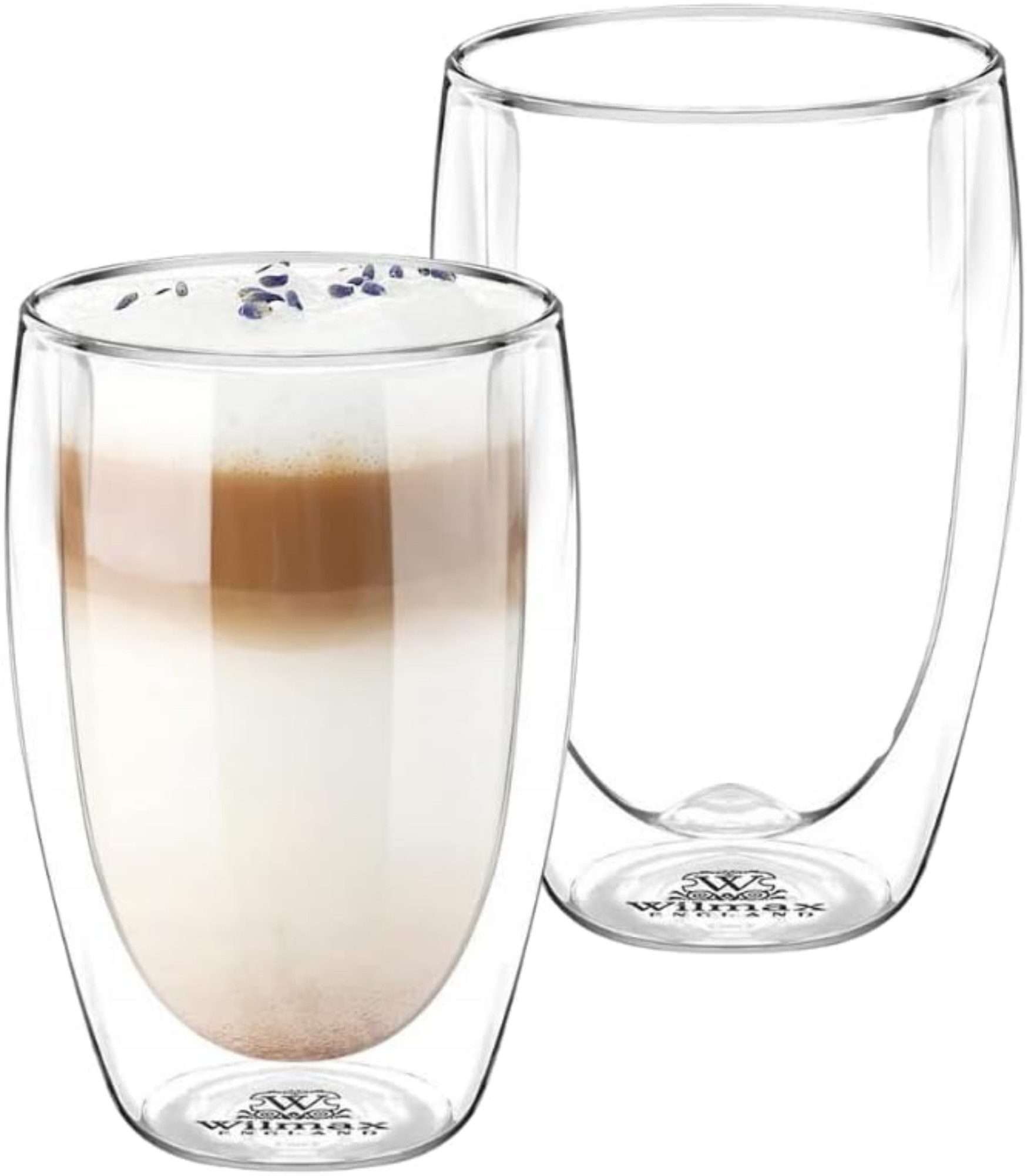 • Wilmax Kaffeegläser - 2 Stück - 400 ml - Doppelwandige Trinkgläser für Heiß- & Kaltgetränke