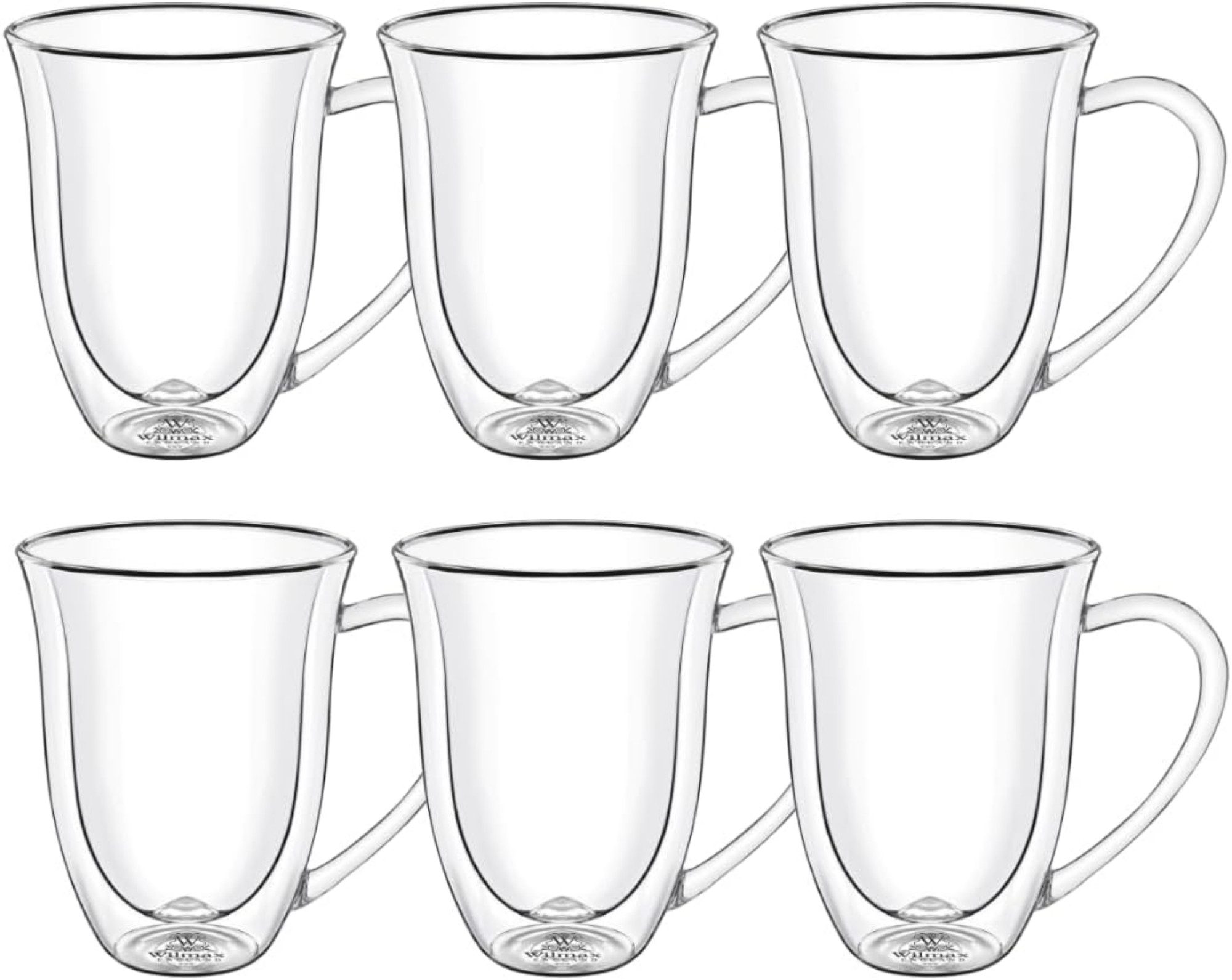 • Wilmax Thermogläser mit Henkel - 6er-Set - 400 ml - Doppelwandig & spülmaschinenfest