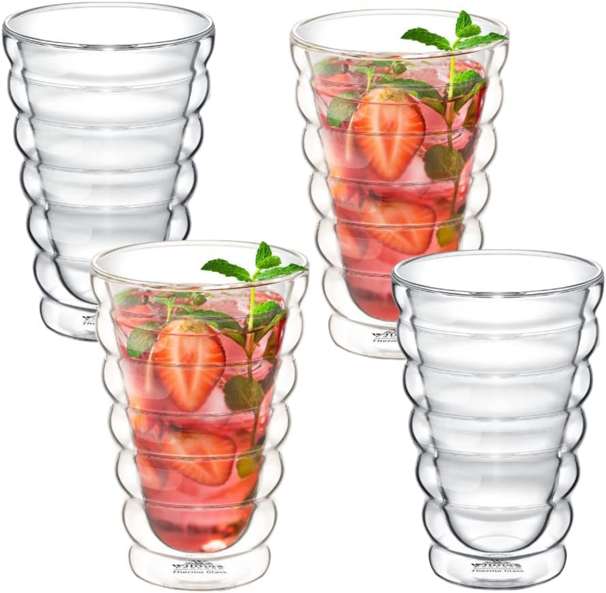 • Wilmax - Thermogläser Bubble - 300 ml - 4er-Set Doppelwandige Gläser für Heiß- & Kaltgetränke