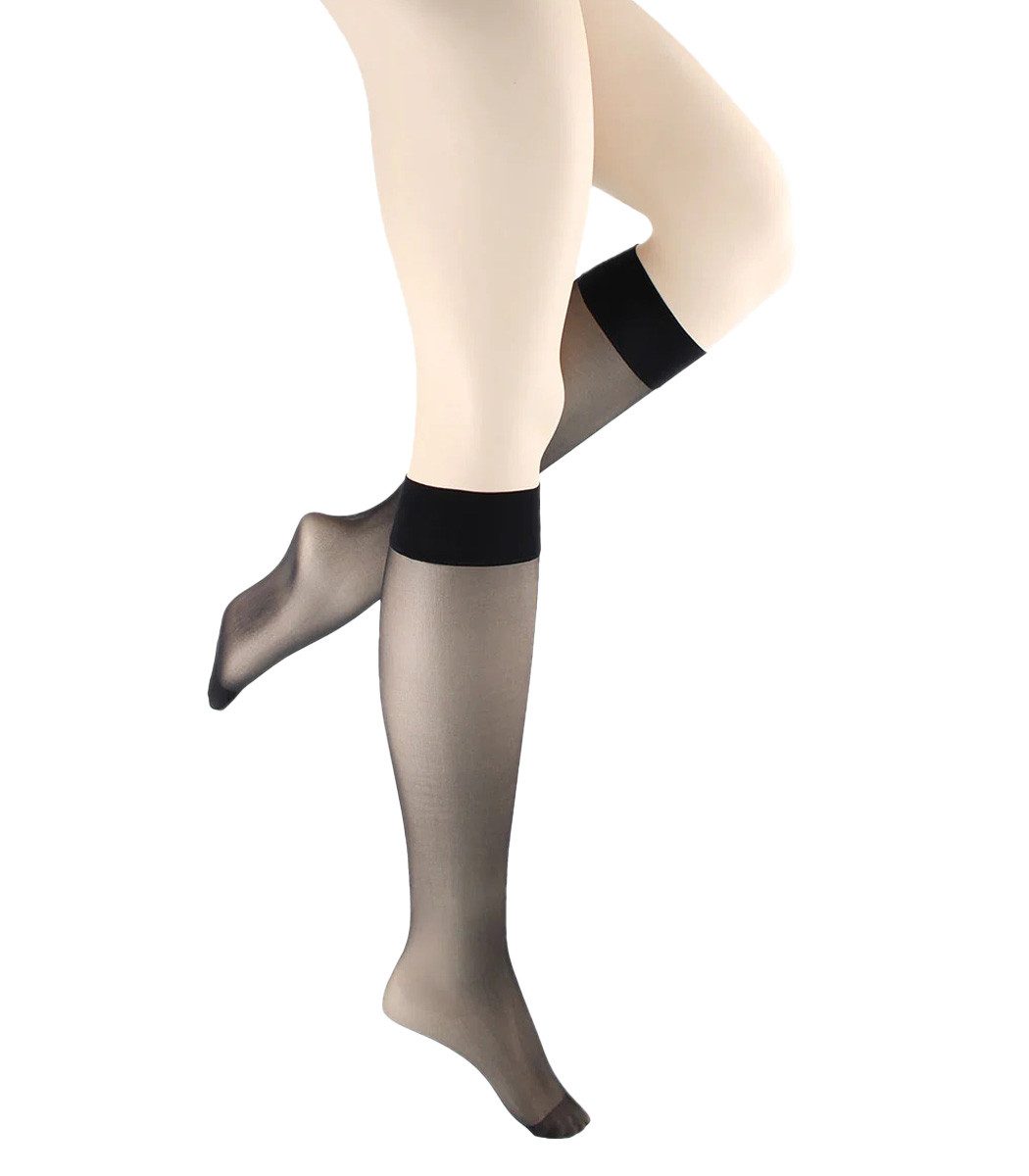 Ultra-zart und dennoch strapazierfähig. Die fast unsichtbaren Kniestrümpfe passen sich optimal Ihrem Bein an. Sie bieten dank der innovativen LYCRA® FUSION® Technologie eine hohe Laufmaschenresistenz und eine gute Passform. Weicher Softbund und ein geformtes Fußteil für ein äußerst bequemes Tragegefühl.