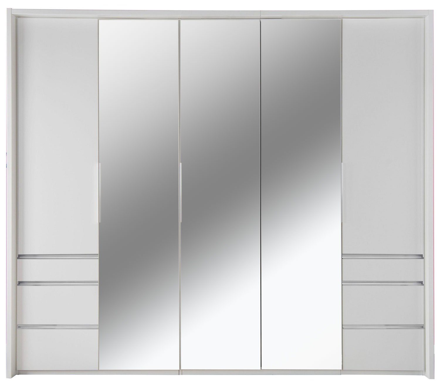 Durch das öffnen der äußeren Falttüren mit Spiegelfläche, haben Sie durch den entstehenden Winkel eine praktische Rundumsicht. Dieser Schrank bietet Ihnen außerdem ausreichend Platz und genügend Aufbewahrungsmöglichkeiten.