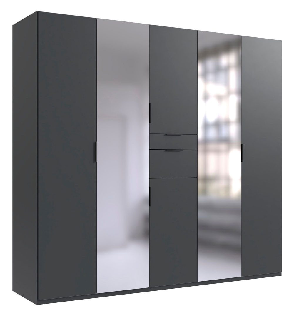 - Außen je 2 große Drehtüren (eine mit Spiegel)