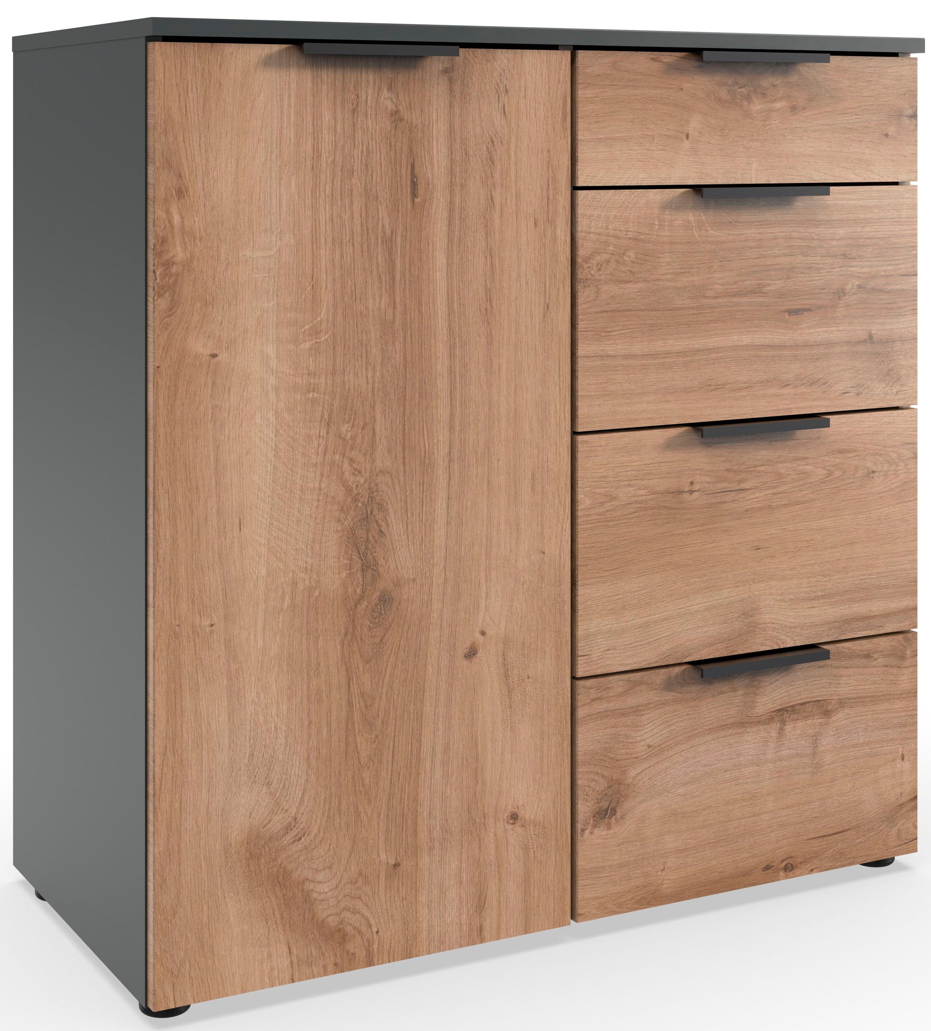 Diese Kombikommode »Level by fresh to go« von Wimex ist eine stylische und praktische Ergänzung für dein Zuhause. Sie überzeugt mit formschönem Design und Zusatz-Stauraum für deine Kleidung. Die stabile Spanplatte, aus dem dieses Sideboard besteht, macht das Möbelstück besonders langlebig und bietet den Vorteil, dass es sich nicht verzieht. Die modernen Relinggriffe aus Metall sind langlebig und unterstreichen den Stil. Das Herstellungsland Deutschland ist für seine gute Qualität bekannt. Dank der Aufbauanleitung kannst du die Montage selbst vornehmen. Es ist Teil der Level Serie. Впередe Artikel hieraus lassen sich besonders gut dazu kombinieren.