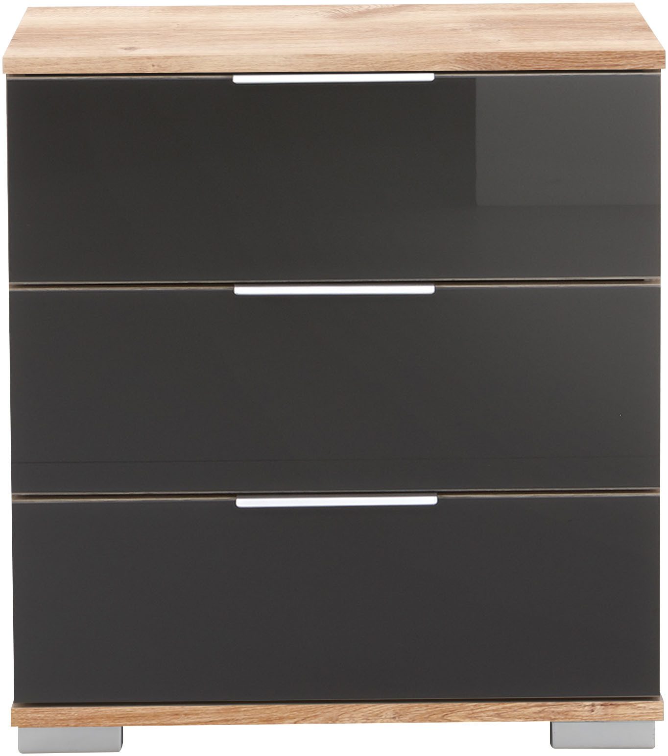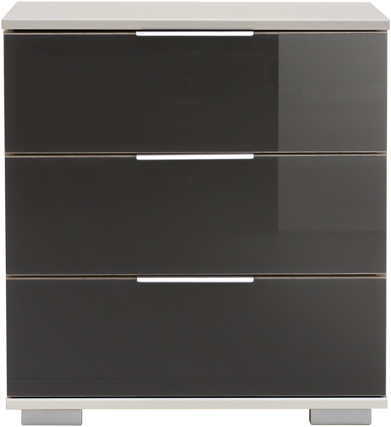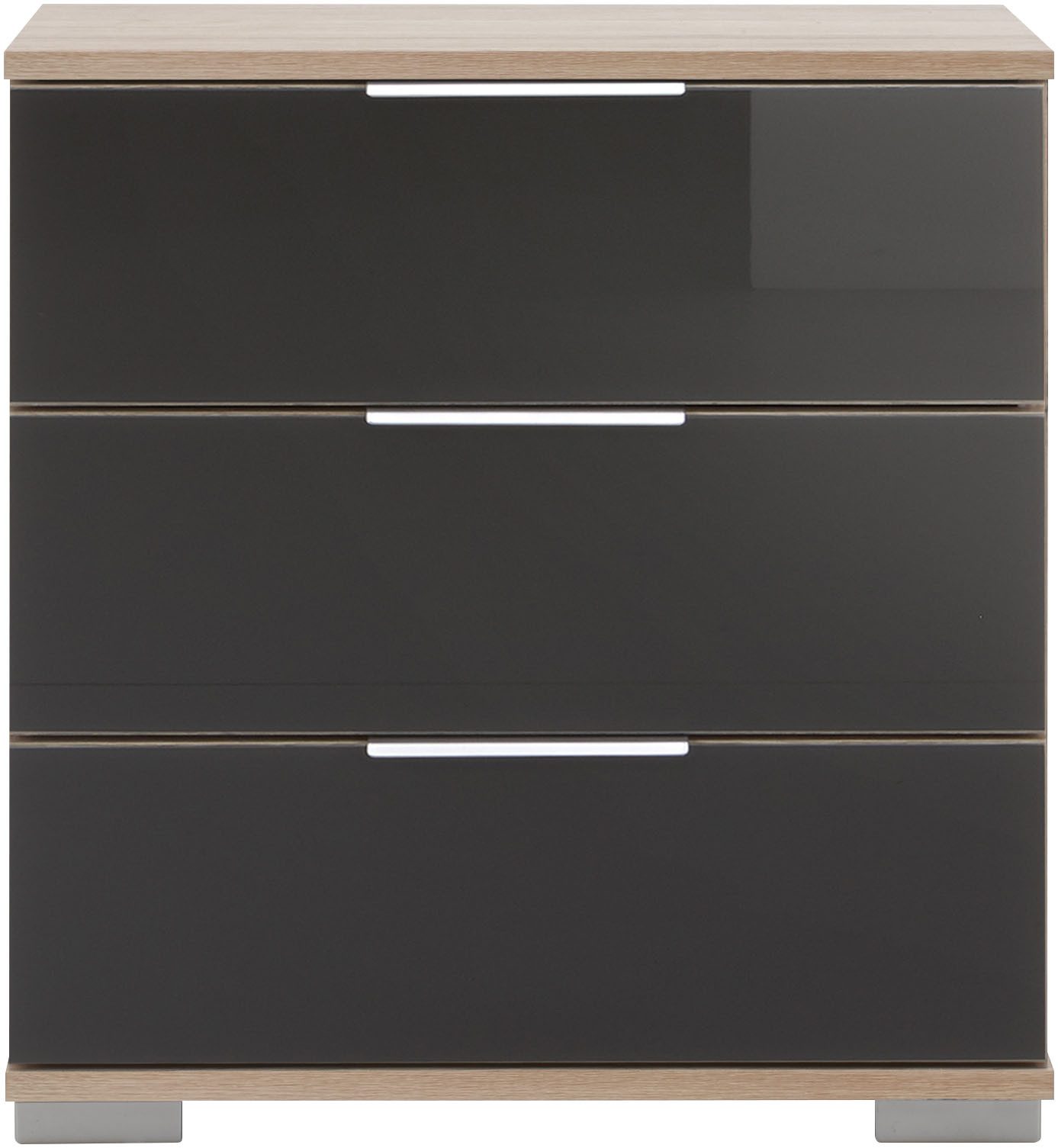 Wissenswertes | Innendekor Leinen grau Korpus: pflegeleichte Kunststoffoberfläche Front: Glas- bzw. Spiegelelemente Pulverbeschichtete Metallgriffe |