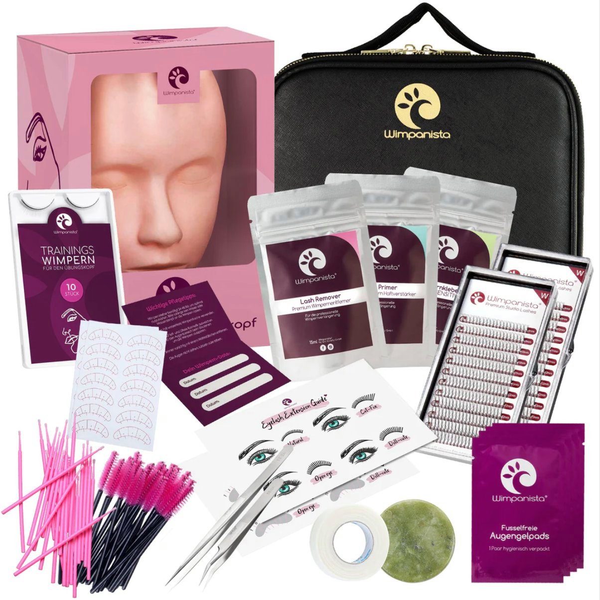 Das 19-teilige Wimpernverlängerung Set 'Fächer Ausbildung' bietet alles, was eine angehende Wimpernstylistin für die Wimpernverlängerung mit Wimpernfächern braucht. Das Starter Set ist die ideale Grundausstattung für die Ausbildung zur Wimpernstylistin. Inklusive einem Übungskopf & einer hochwertigen Kosmetiktasche. Das 19 teilige Wimpernverlängerung Starter Set beinhaltet: Hochwertige Kosmetiktasche (26 x 23 x 10cm) - 1 Übungskopf (24 x 14 x 12,5cm) - 10 Trainingswimpern für den Übungskopf - 1 Profi Pinzette gerade - 1 Profi Pinzette gebogen - 10 Paar Augengelpads - 1 Jade Stein - 1 Rolle medizinisches Klebeband - 50 Wimpernbürstchen - 100 Microbürstchen - 100 Microbürstchen - 1 Wimpanista Primer (15ml) -1 Wimpanista Remover (15ml) - 1x 5D Wimpernfächer C-Curl 0.07 mm Mix - 1x 5D Wimpernfächer D-Curl 0.07 mm Mix - 10 Terminkarten mit Pflegehinweisen - 1 Style Karte 'Eyelash Extension Guide' - Wimpernschablonen 28 Stück - Gesichtsschutz. Einfach den QR Code auf dem beiliegenden Flyer scannen und du kommst direkt zu den Wimpernverlängerung Schulungsunterlagen & Handbüchern. Все Flüssigkeiten - Wimpernkleber, Remover und Primer - sind ausschließlich für die fachgerechte & professionelle Anwendung.