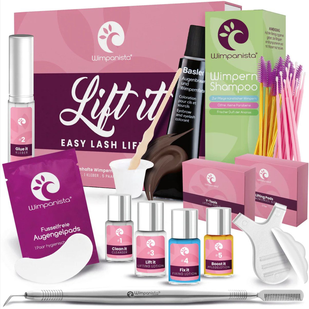 Inhaltsstoffe | #1 cleanit-Cleanser: Purified Water, Methylparaben #2 glueit-Kleber: Polyacrylate, Deionized Water, Ethanol #3 liftit-Liftinglotion: Purified Water, Polyacrylamide, Propylene Glycol, Monoethanolamine, Thioglycollic Acid #4 fixit-Fixinglotion: Purified Water, Polyacrylamide, Propylene Glycol, Sodium Bromate #5 boostit-Pflegelotion: Purified Water, Propylene Glycol, Collagen, Polysorbate Lash Lifting Set 'Lift It' Plus & Pro Wimpernshampoo: Aqua, Sodium Cocoamphoacetate, Lauryl Glucoside, Glycerin, Sodium Cocoyl Glutamate, Sodium Lauryl Glucose Carboxylate, Sodium Levulinate, Citric Acid, Parfum, Sodium Anisate, Coco-Glucoside, Glyceryl Oleate, Hydrogenated Palm Glycerides Citrate, Tocopherol, Limonene, Citral Augenbrauenfarbe: Farbe Ingredients: Aqua, Cetearyl Alcohol, Glyceryl Stearate SE, Oleamide DEA, p-Phenylenediamine, m-Aminophenol, Sodium Cetearyl Sulfate, Helianthus Annuus Seed Oil, Ammonium Hydroxide, Resorcinol, Lanolin, Parfum, Sodium Sulfite, p-Aminophenol, Limonene, Butylphenyl, Methylpropional, Linalool, Citral, Geraniol Entwickler Ingredients: Aqua, Hydrogen Peroxide, Cetearyl Alcohol, Paraffinum Liquidem, PEG-40 Hydrogenated Castor Oil, Sodium Cetearl Sulfate, Glycerin, Etidronc Acid |