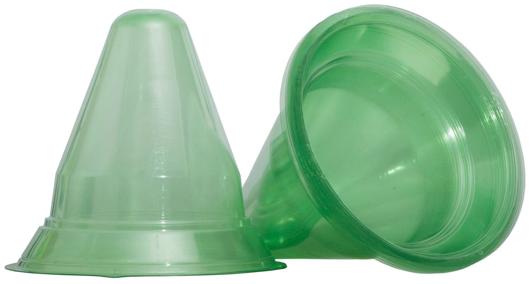 Ein Hut für Ihren Salatkopf! Ein eigener Garten bedeutet viel Arbeit. Umso ärgerlicher ist es, wenn die mühsam gezogenen Pflanzen von Umwelteinflüssen zerstört werden. Pflanzenhüte bieten hier eine einfache aber wirksame Lösung, denn sie schützen vor Schnecken, Vögeln, Hagel und Frost. Der Umwelt zuliebe wird kein schädigendes Material, wie beispielsweise Kupfer, verwendet. Der kegelförmige Pflanzenhut besteht aus einem wetterbeständigen, recycelbaren PET-Kunststoff. Die spezielle Form ermöglicht den Pflanzen während der gesamten Wachstumsphase ein Schonklima. So wird, unabhängig von der Witterung, optimales Wachstum gewährleistet. Auch für Schnecken und Vögel stellen Pflanzenhüte eine unüberwindbare Barriere dar. Anwendung: Setzen Sie den Pflanzenhut direkt über eine Jungpflanze und drücken Sie ihn am Boden fest. Inhalt: 10 Stück Pflanzenhüte. Hinweis: Kombiniert mit einem Schnecken-Schutzring können Jungpflanzen in der gesamten Wachstumsphase vor Schneckenbefall geschützt werden.