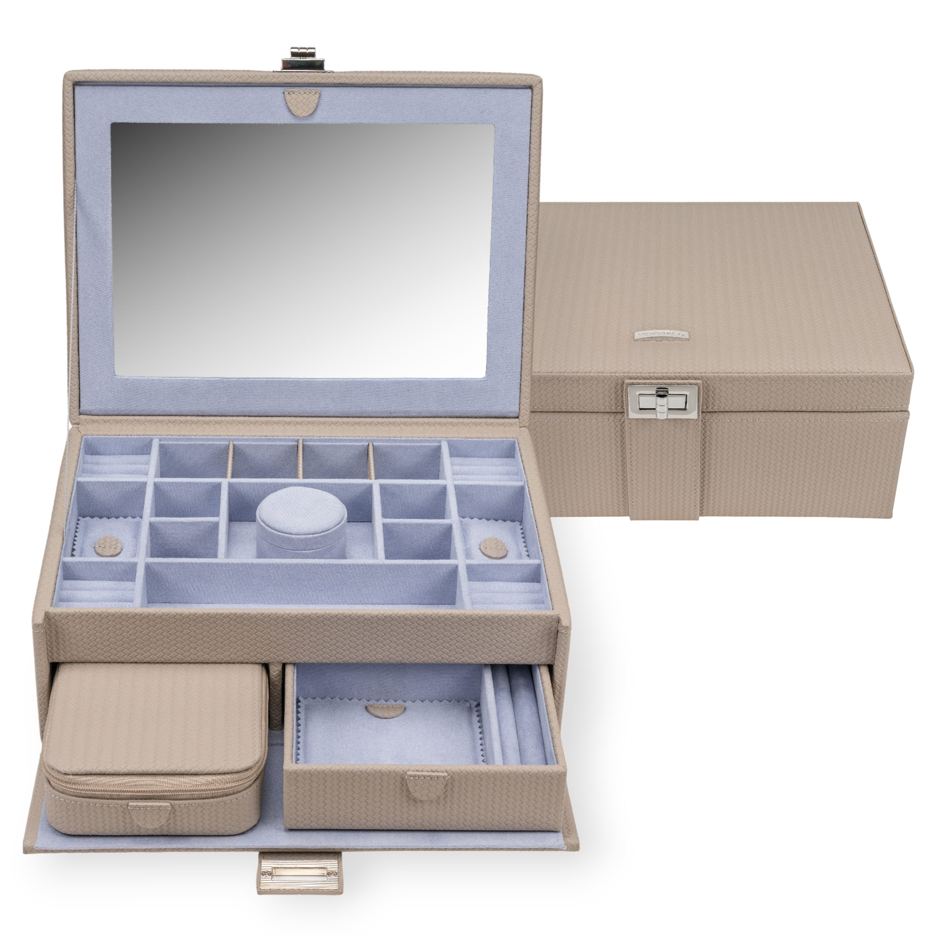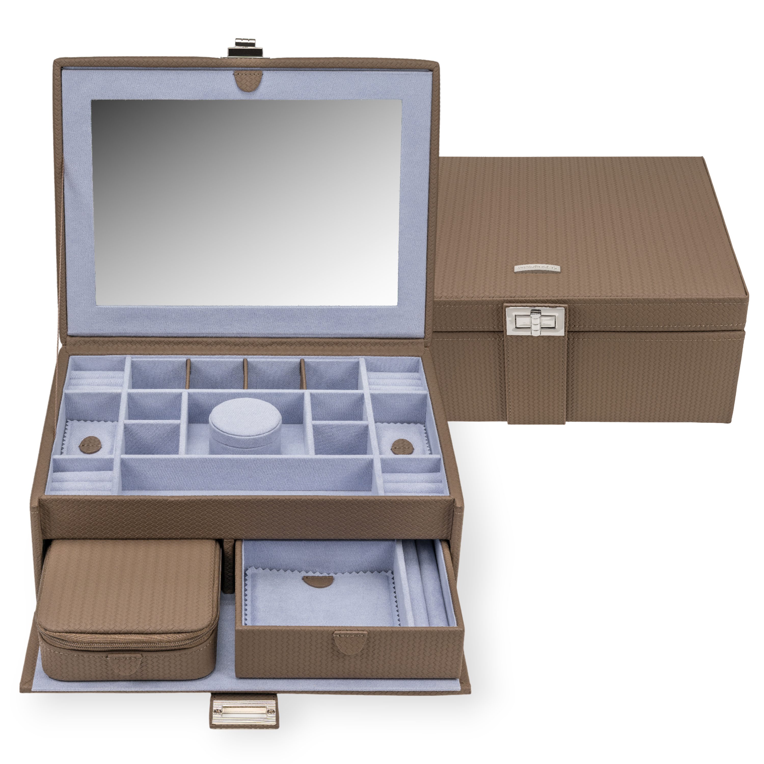 Markeninformationen | Seit ihrer Gründung im Jahr 1967 steht die Marke Windrose für außergewöhnliche Qualität in der Welt der Schmuckaufbewahrung und Maniküretuis im Bereich Kleinlederwaren. Unter dem Dach von Windrose finden Sie eine exquisite Auswahl an Schmuckkoffern, Uhrenboxen und Maniküretuis, die in jeder Hinsicht überzeugen – von der Funktionalität bis hin zum Design. |