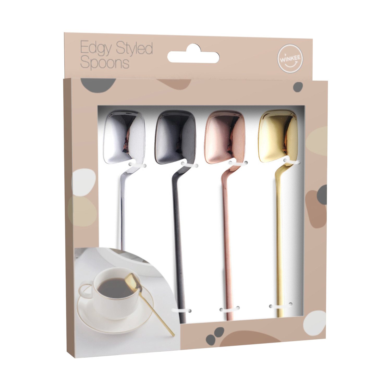 Das weibliche Geschlecht hat oft hohe Anprüche was Geschenke angeht, aber das 4er Set Schaufel Kaffeelöffel kann getrost mithalten. Frauen geben es ungern zu, aber sie lieben es beschenkt zu werden. Das 4er Set Schaufel Dessertlöffel eignet sich also hervorragend um Frauen ein Lächeln ins Gesicht zu zaubern. Das Set besteht aus vier Edelstahl Löffeln die wie eine Schaufel bzw. wie ein Spaten aussehen. Die Löffel sind in silber, gold, bronze und dunklem grau enthalten und haben eine Einkerbung zwischen Stiel und Fläche. Mit dieser kann der Löffel an einer Tasse eingehängt werden und steht so nicht unnötig im Kaffee rum. Ein Löffel hat in etwa eine Длина von 13,5 cm.