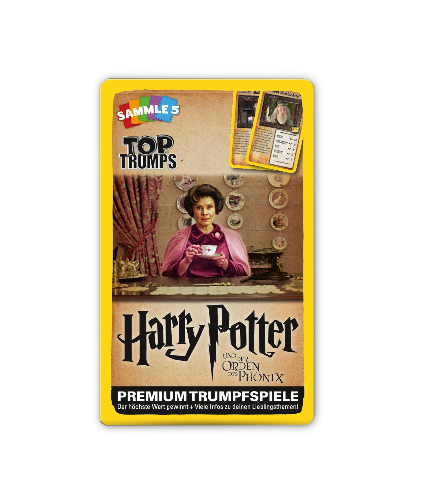 Das neue TOP TRUMPS Harry Potter – Der Orden des Phönix bringt dich direkt in die spannende Welt des gleichnamigen Films rund um Harry Potters Abenteuer. Albus Dumbledore, Cho Chang, Lucius Malfoy, Petunia Dursley sowie 26 weitere Charaktere treten der in den Категории „Magie, Schlauheit, Mut, Weisheit und Zorn“ gegeneinander an.