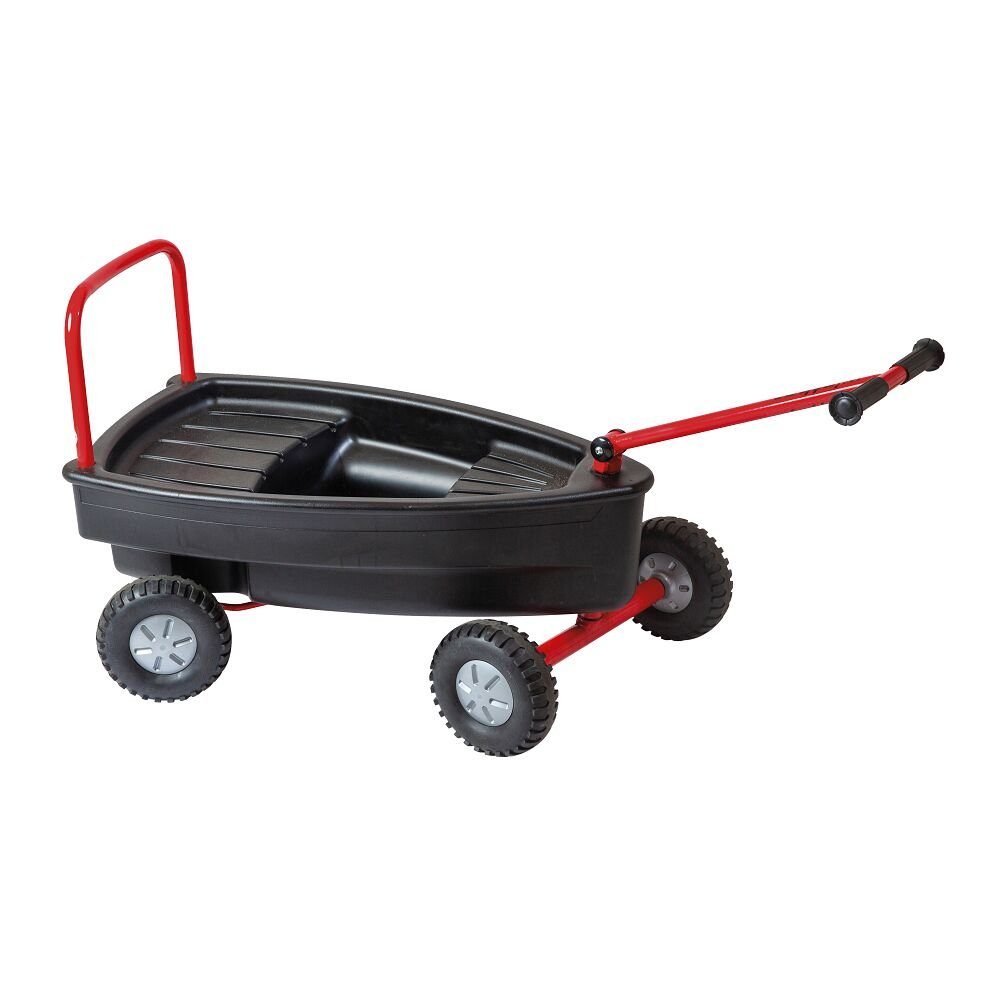 Das Winther Viking Spielfahrzeug "Surfer Boat" lässt sich wie ein Bollerwagen nutzen. Das Spielfahrzeug ist mit einer Wanne in Bootsform ausgestattet. Hier kann ein Kind Platz nehmen. Natürlich können auch Sand aufgeladen oder Lieblingsspielzeuge transportiert werden. Die Wanne aus Kunststoff lässt sich nach dem Spiel leicht reinigen. Das Fahrgestell besteht aus stabilem, pulverbeschichtetem Stahlrohr. Den Bollerwagen ziehen Sie bequem mit dem Handgriff.
