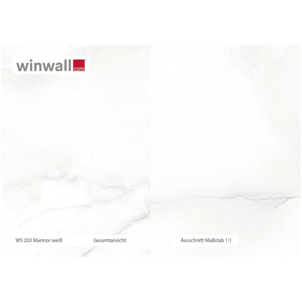 Produktdetails für die fugenarme Duschrückwand mit dem Dekor Marmor weiß:Abgebildete Dekorationen und Zubehör gehören nicht zum Lieferumfang!
