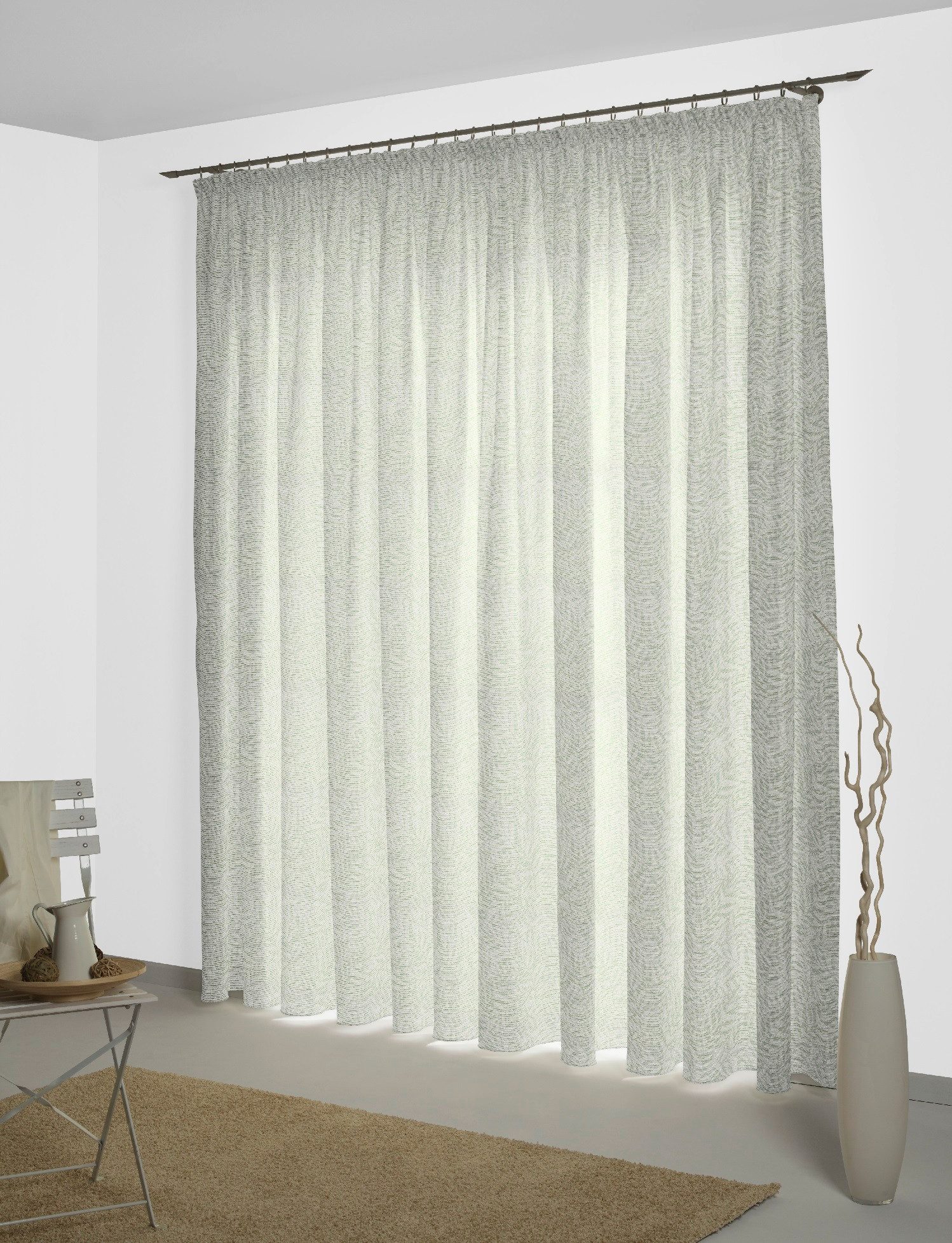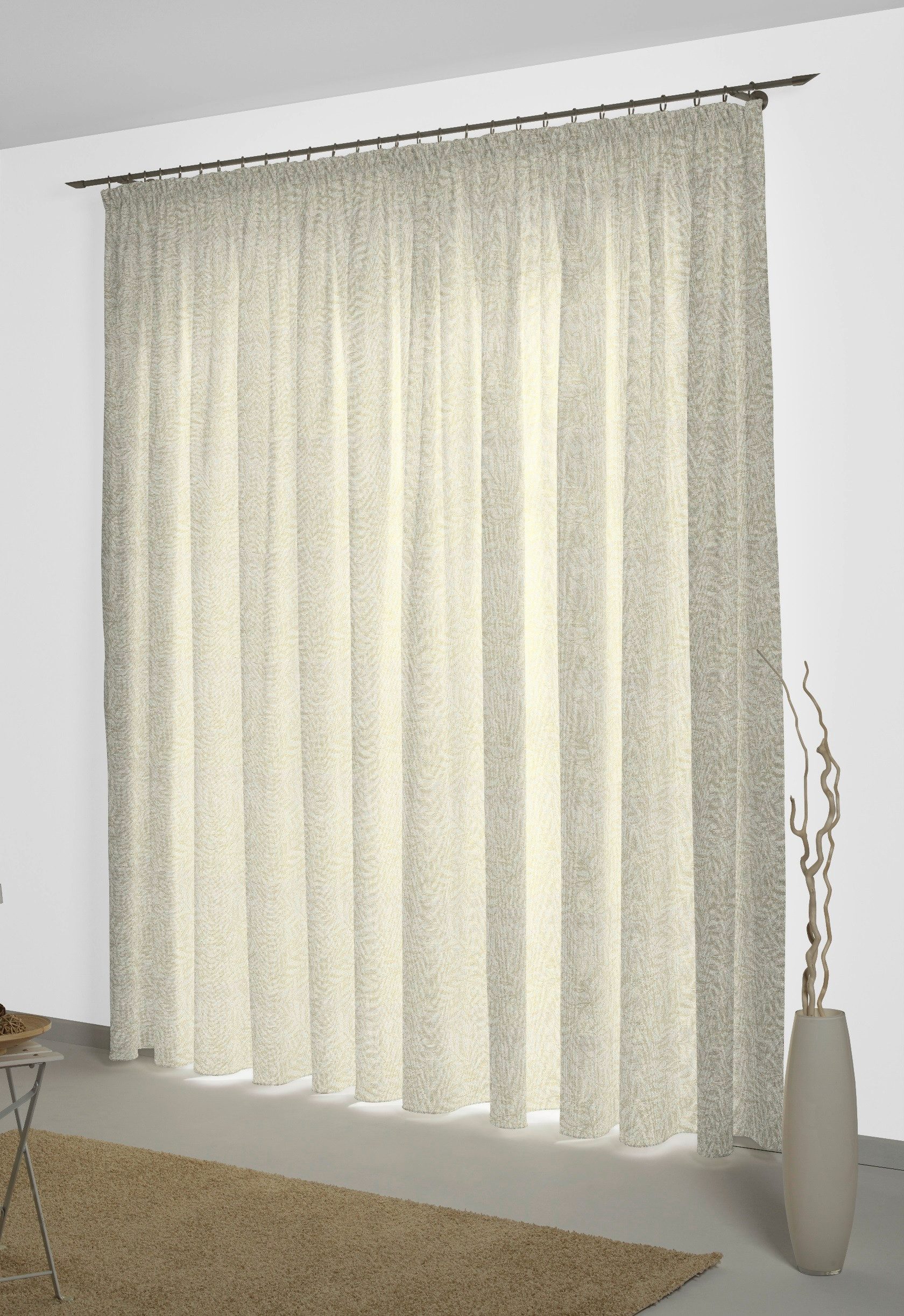 Hinweis Aufhängung | Montageart 1: Aufhängung mittels Gardinenröllchen (nicht im Lieferumfang enthalten) in der Gardinenschiene. Montageart 2: Aufhängung mittels verdeckter Schlaufen an der Gardinenstange. |