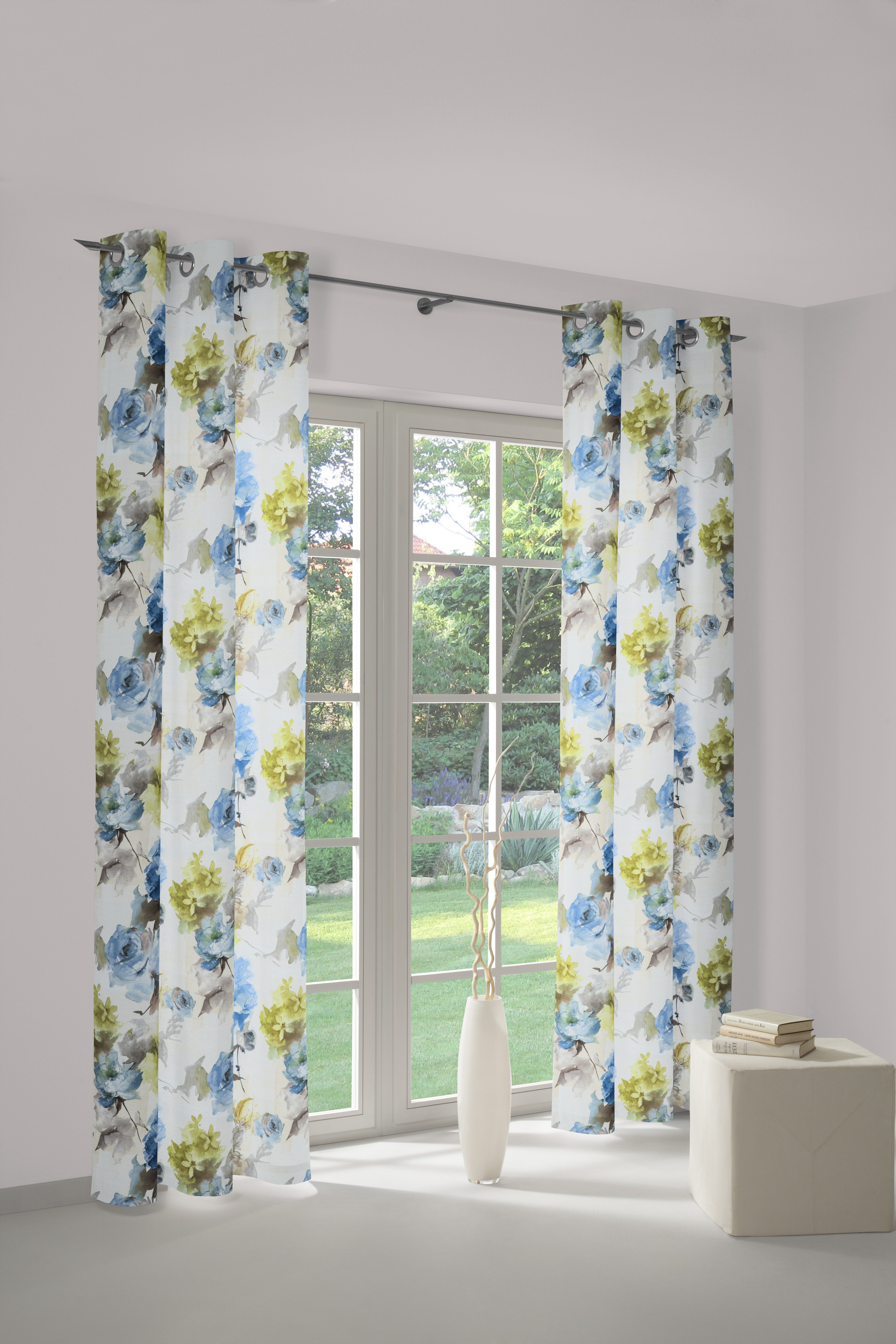 Aufhängung erfolgt mittels Ösen (Durchmesser ca. 35 mm) an der Gardinenstange.