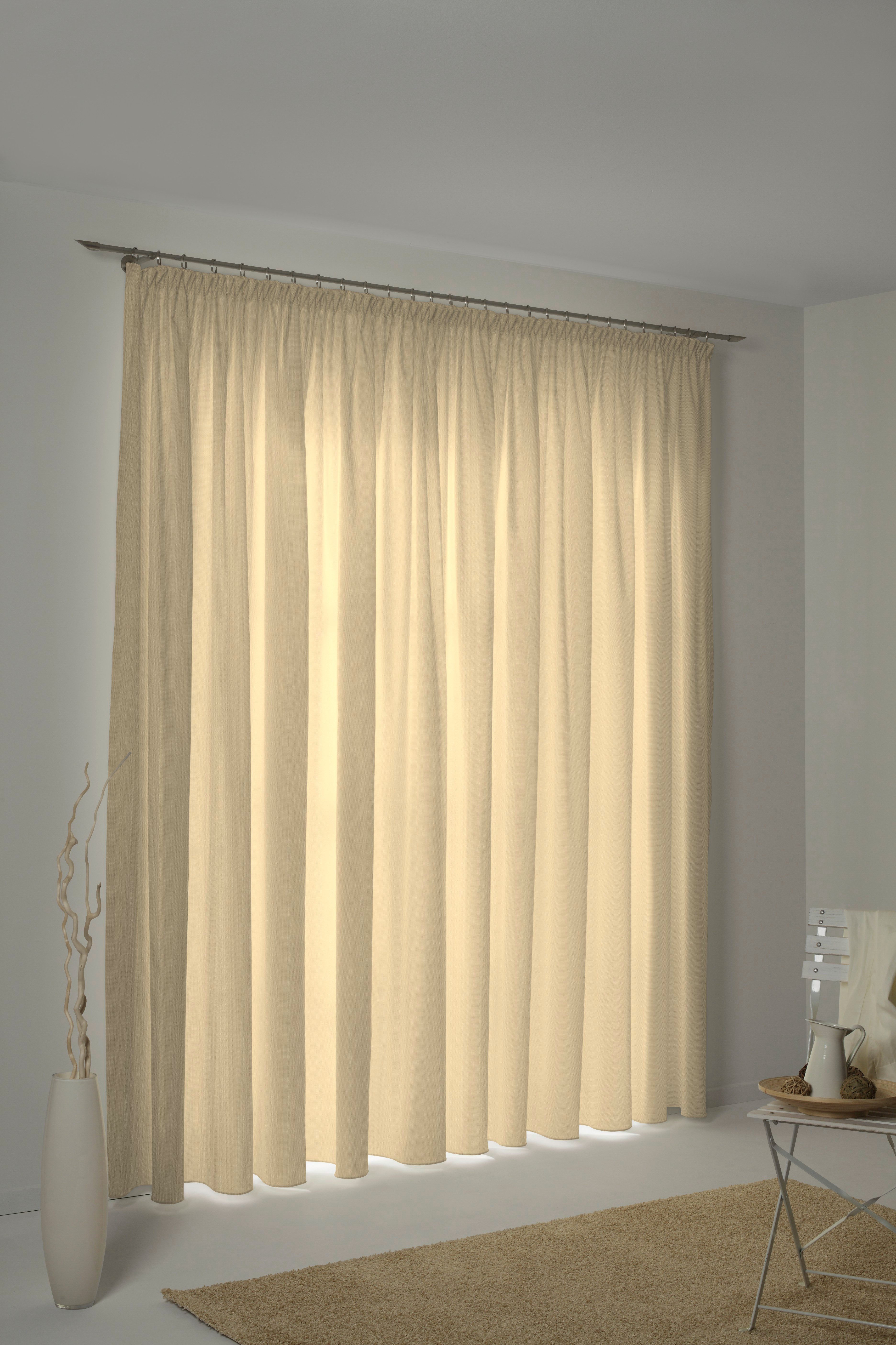 Schwere und hochwertiger Vorhang aus Baumwolle mit Universal-Gardinenband. Das heißt, es ist wirklich ganz einfach, den Vorhang ans Fenster zu bringen. Ich habe eine Messinggardinenstange mit Gardinenringen und Haken benutzt. Sehr schöne Farbe, macht den Raum gemütlich und wohnlich. Lieferzeit wurde eingehalten.