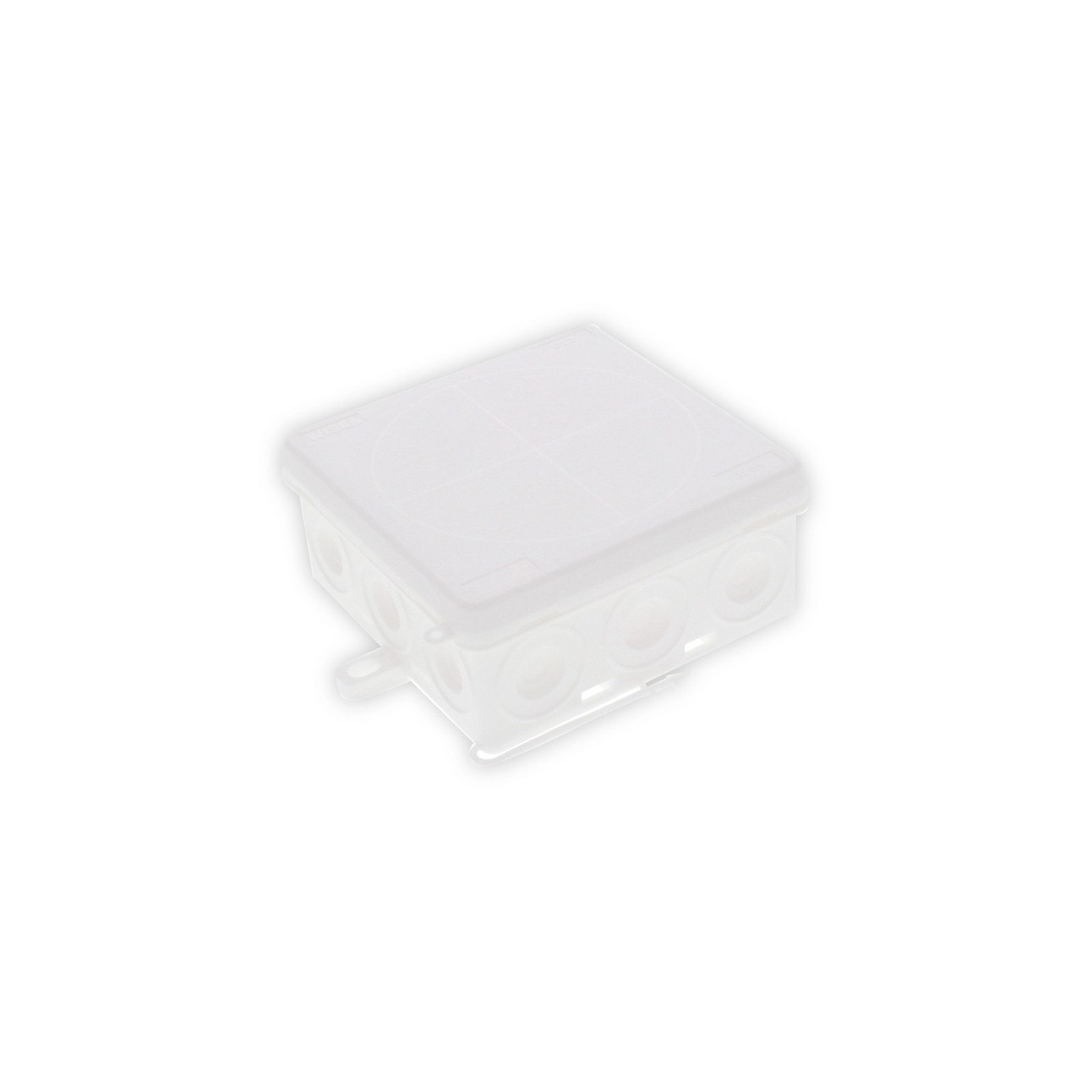 Hochwertige Abzweigdose mit 12 selbstdichtende und abschneidbare Kabeleinführungen seitlich sowie 4 im Boden. Mit Deckel und 2 außenliegende Befestigungslaschen.