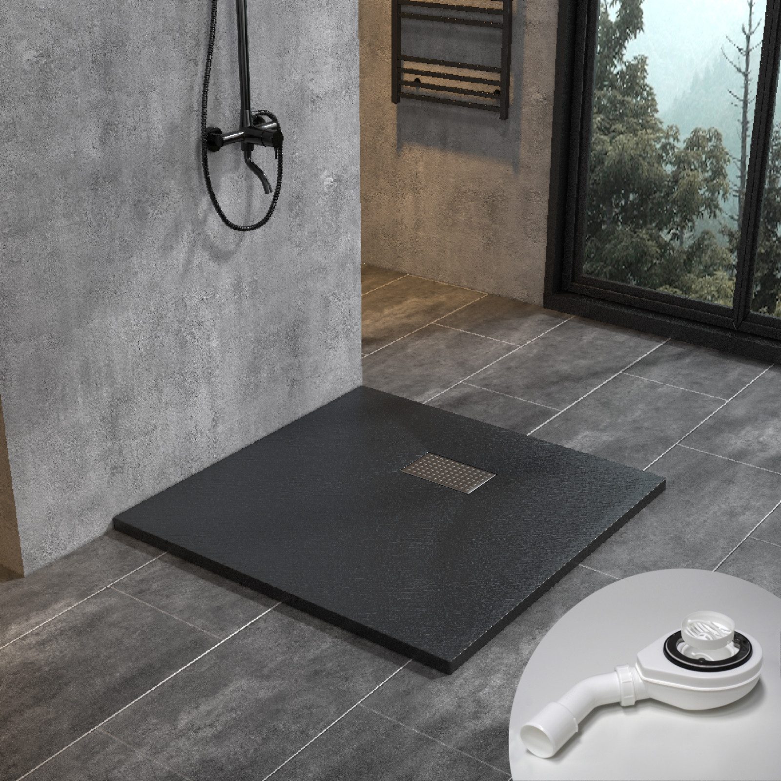 mit Superflacher Ablaufgarnitur Set inkl. Siphon und Haarsieb für alle Duschwannen mit Ø 90 mm Ablaufloch