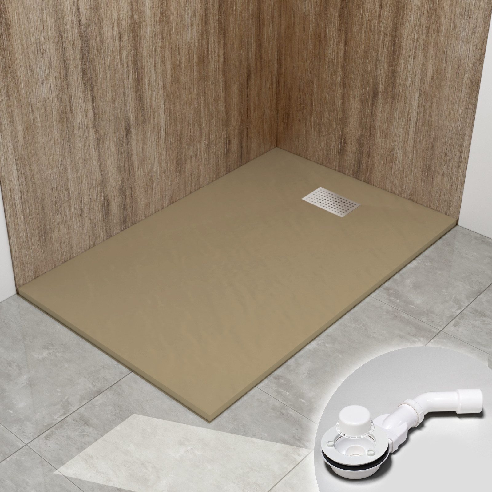 Lieferumfang: 1 x Duschwanne, 1 x Ablaufgarnitur, 1 x Edelstahl Abdeckung