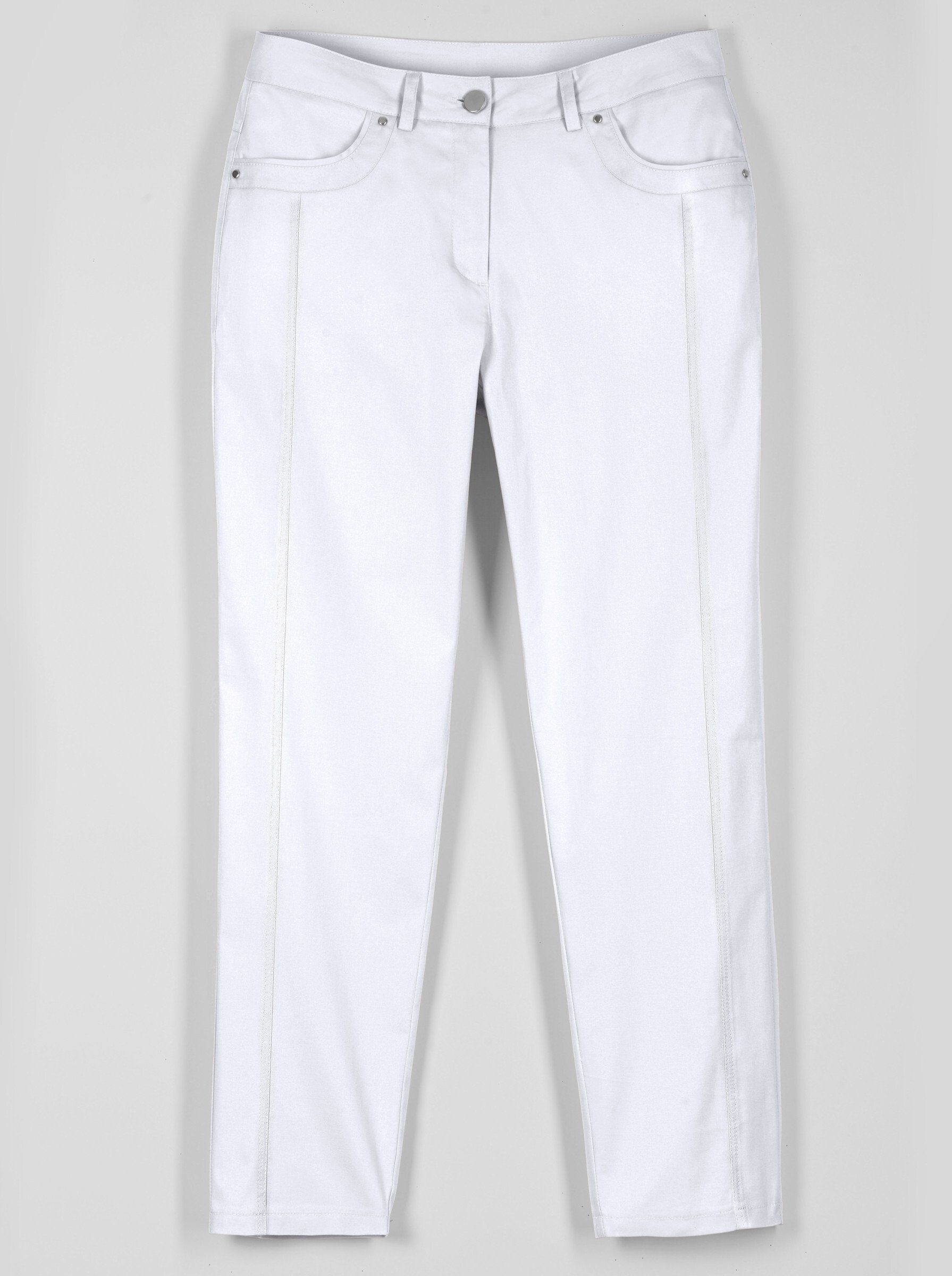 .....eine richtige Sommerhose! Leichte Baumwollqualität und nicht so viel Elasthan, dass Sie wie Gummi ist. Ich liebe solche leichten Sommerhosen, oft sind diese aus Twill, die nach meiner Meinung für den heißen Sommer bei uns in Süddeutschland nicht geeignet sind. Bei mir sitzt die Hose perfekt . Meine Figur entspricht dem H-Typ. Wenn der Reißverschluss schlecht läuft, kann man ihn mit etwas trockener Seife einreiben...