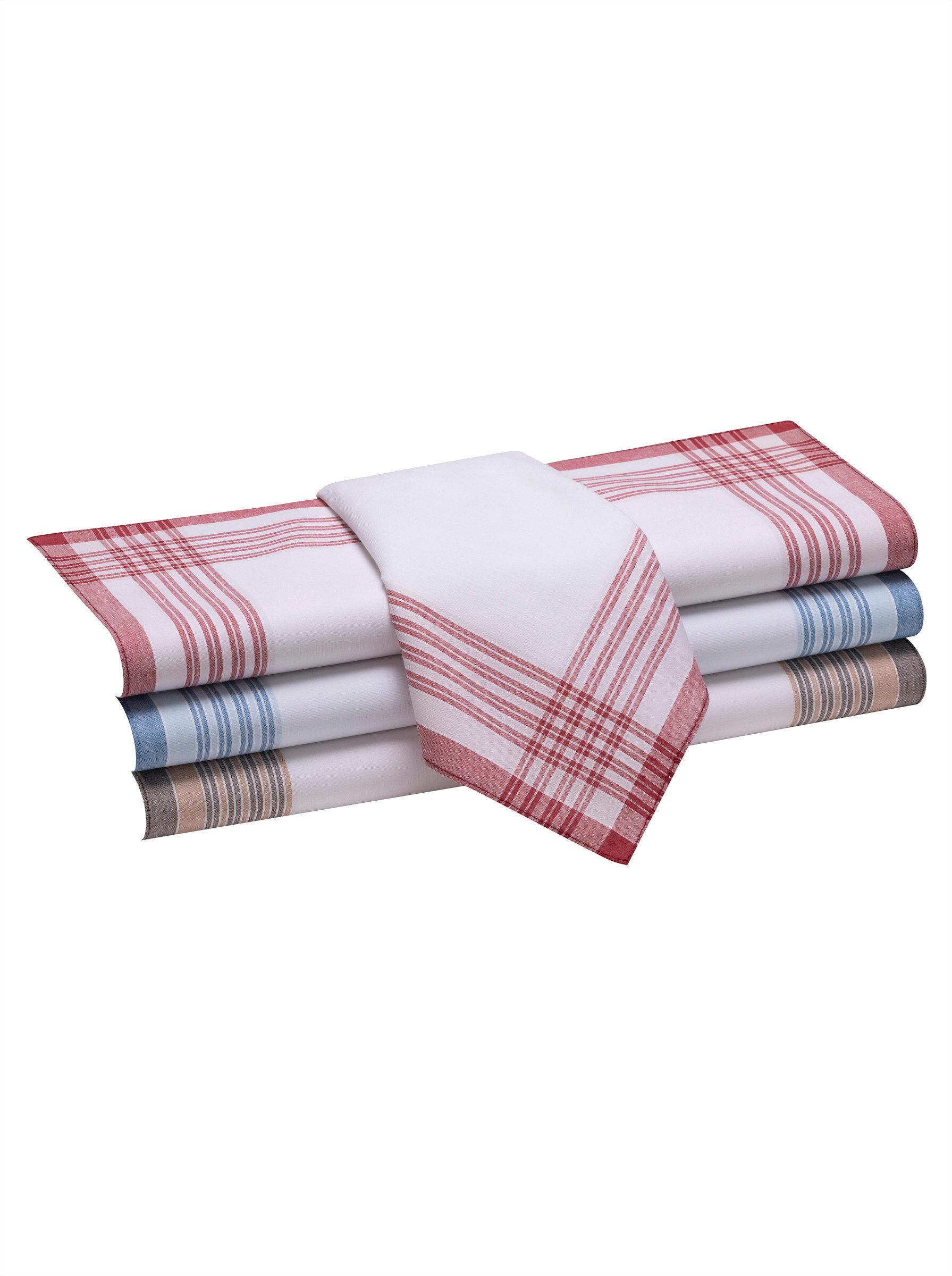 Herren-Taschentücher mit breiter Streifenbordüre in kräftigen Farben.