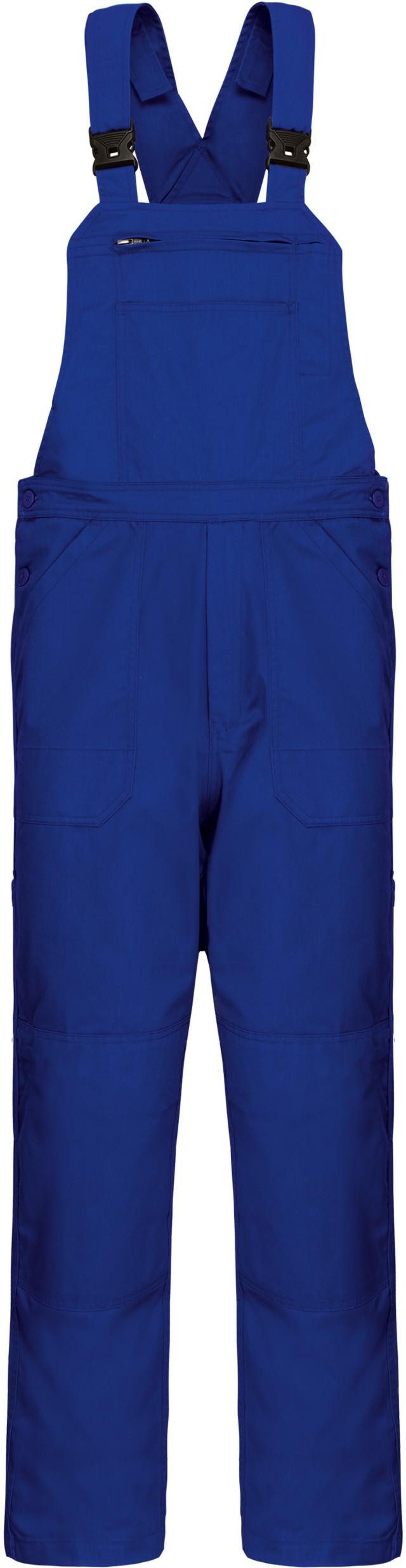 65 % Polyester / 35 % Baumwolle. Sergestoff. Bei 60 °C waschbar. 5 Taschen auf der Vorderseite: 2 aufgesetzte Taschen + 1 große Fronttasche mit Reißverschluss und 1 Stiftfach. 1 aufgesetzte Gesäßtasche. Über eine Kunststoffschnalle verstellbare Träger. Breiter Gummieinsatz am Rücken für mehr Bewegungsfreiheit. Hosenschlitz mit Reißverschluss. Seitliche Öffnung über eine Leiste mit doppeltem Knopfverschluss. 1 Namensetikett auf der Innenseite. Verstärkte Nähte + Verstärkung am Knie. Befestigungshaken.