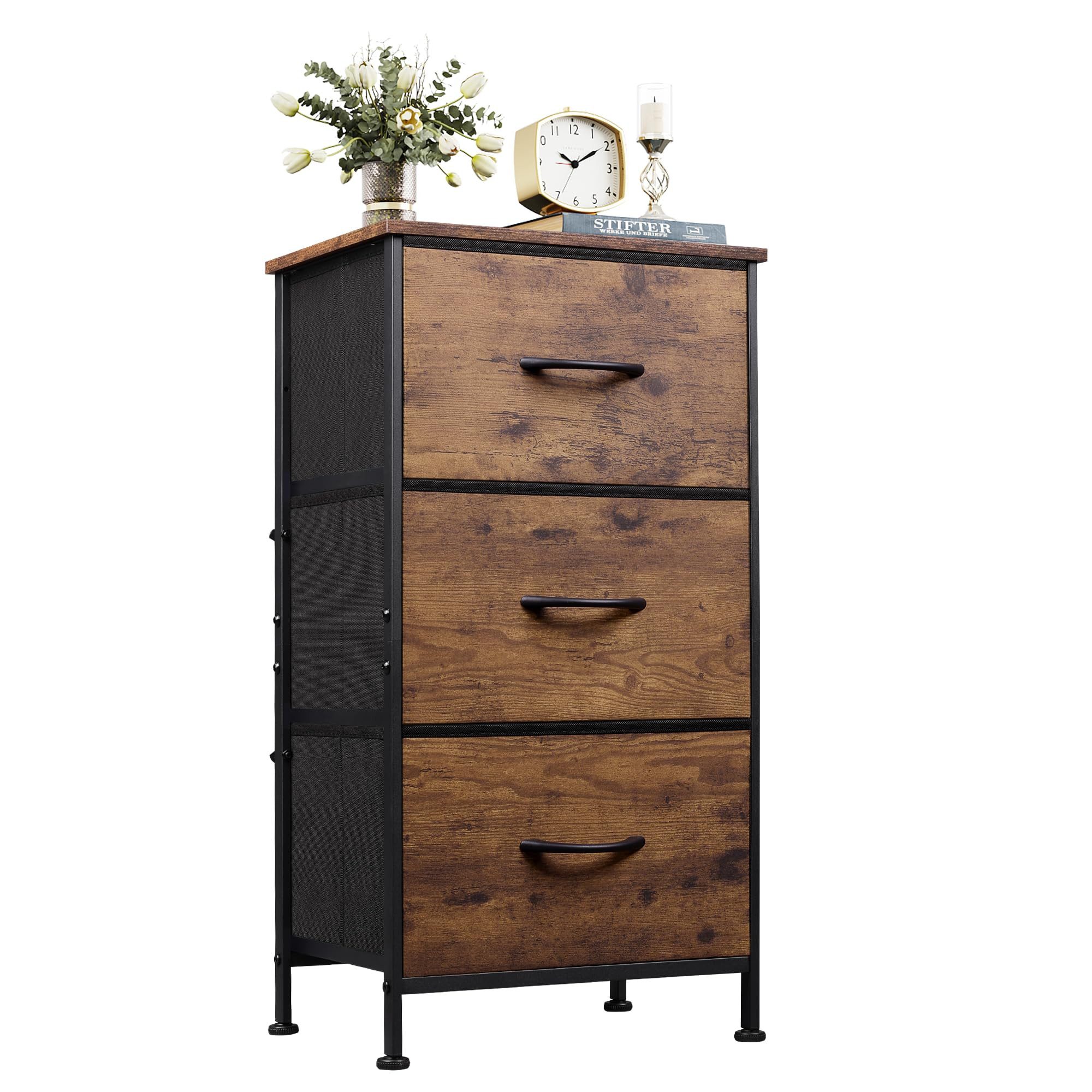 Diese Kommode mit 3 Schubladen bietet eine ideale Kombination aus Stauraum, Stabilität und modernem Design. Mit ihrem robusten Metallrahmen, der hochwertigen Holzplatte und den faltbaren Stoffschubladen ist sie vielseitig einsetzbar – ob als Aufbewahrungsschrank im Schlafzimmer, als Kommode im Wohnzimmer oder als Sideboard im Flur.