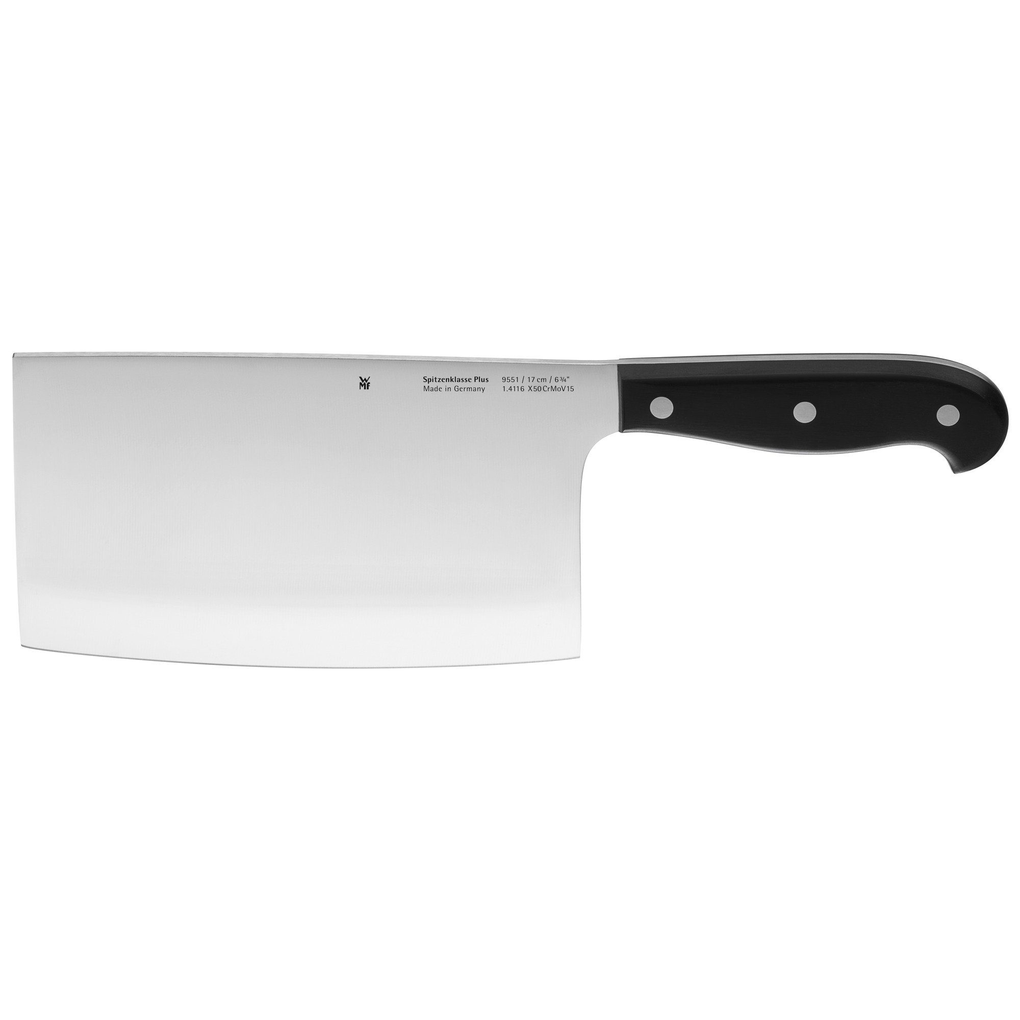 Schneidetechnik: Dieses Kochmesser hat die Form eines Beils. Die Klinge ist vorne etwas abgerundet. Zum Kräuterhacken beispielweise hält man mit einer Hand den Griff und mit der anderen vorne die Klinge. So lassen sich kleine, schnele Hackbewegungen gut ausführen. Es ist vielseitig einsetzbar, zum Zerteilen von Knochen sollte man lieber spezielle Hackmesser verwenden.