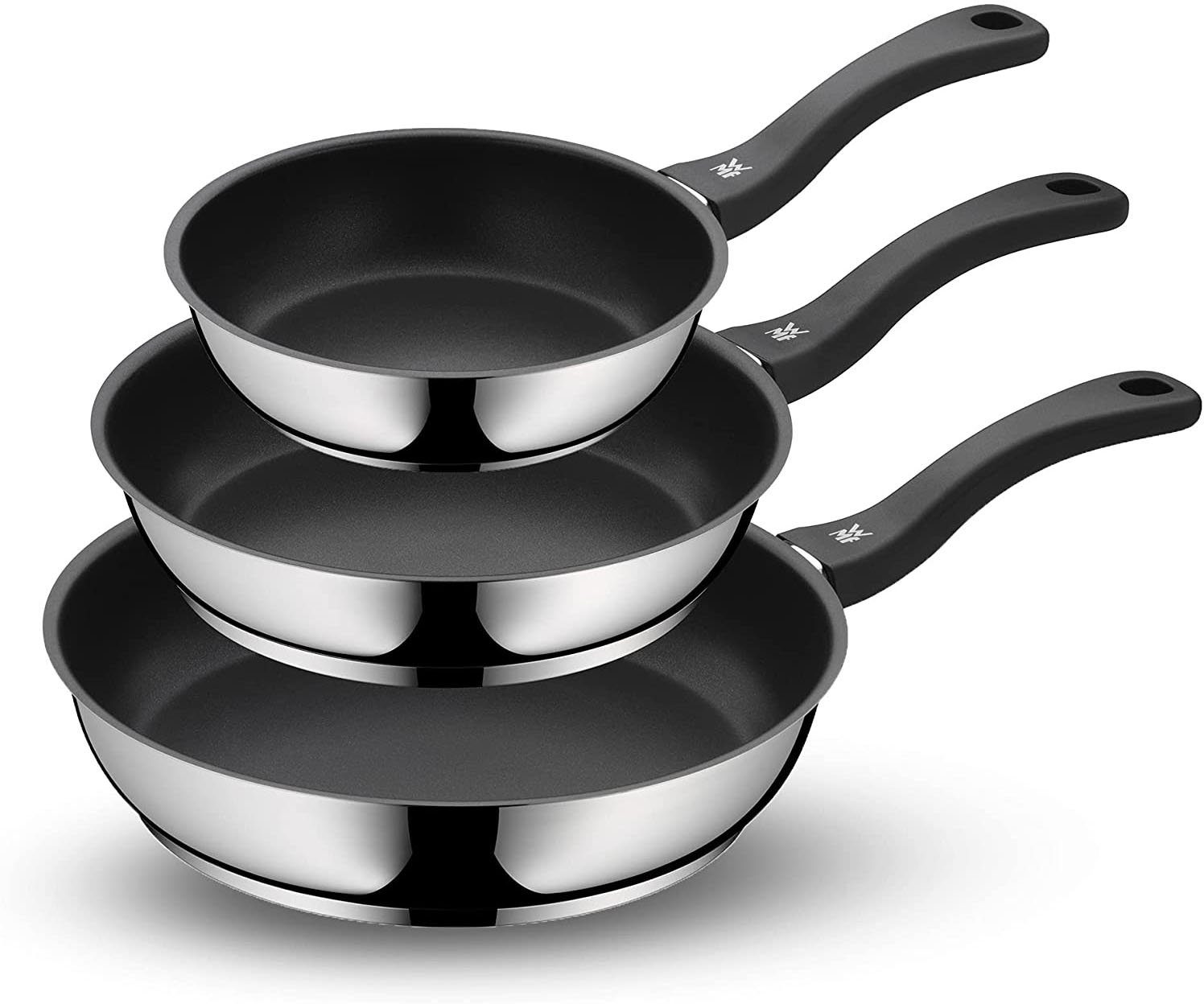 Ob knackiges Gemüse, edler Fisch oder leckere Fleischgerichte: Das 3-teilige Bratpfannen-Set von WMF ist wie gemacht für abwechslungsreiche Pfannengerichte in der täglichen Küche. Die robuste keramische Antihaftversiegelung mit hartem mineralischem Aufbau sowie der TransTherm®-Allherdboden für eine optimale Wärmeverteilung und -speicherung ermöglichen hervorragende Bratergebnisse. Gefertigt aus robustem, elegantem Cromargan®: Edelstahl Rostfrei sind die drei backofengeeigneten Stielpfannen mit TransTherm®-Allherdboden für alle Herdarten einschließlich Induktion geeignet. Die praktischen wärmereduzierenden Hohlgriffe sowie der breite Schüttrand für tropffreies Ausgießen und müheloses Servieren machen dieses dreiteilige Pfannen-Set zu einem unverzichtbaren Begleiter in jeder Küche.