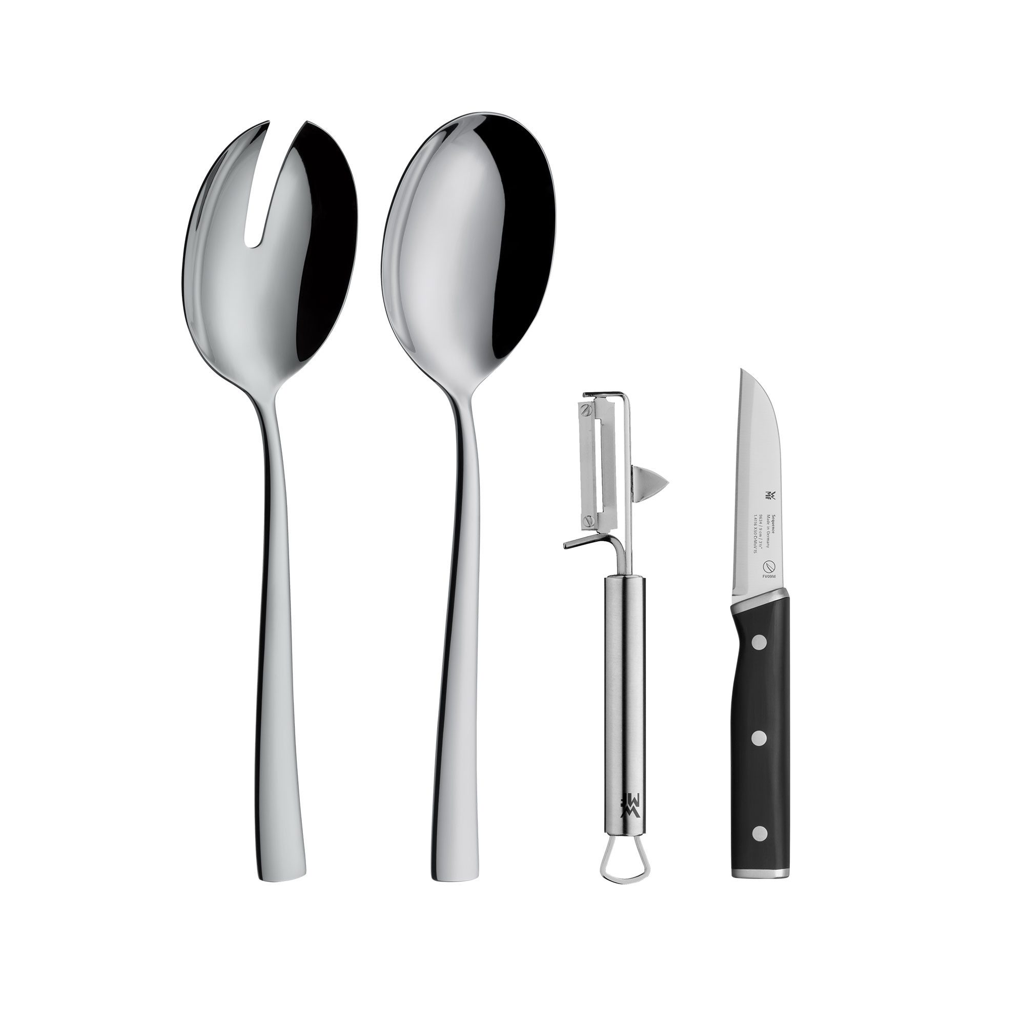 Dank der ergonomischen, schlanken Formgebung und den sehr angenehmen Proportionen liegt das Besteck Philadelphia von WMF einfach perfekt in jeder Hand und fügt sich dazu durch sein zeitlos-schlichtes und völlig unaufdringliches Design nahtlos in jedes Ambiente ein. Wie die übrigen Besteckteile, ist auch das 2-teilige Philadelphia Salatbesteck aus hochwertigem, sehr strapazierfähigem und pflegeleichtem Cromargan®: Edelstahl Rostfrei 18/10 gefertigt, das genauso für eine außergewöhnliche Langlebigkeit wie für eine beeindruckend exquisite Ästhetik sorgt. Zur unkomplizierten Reinigung im Alltag ist das Salatbesteck selbstverständlich spülmaschinenfest.