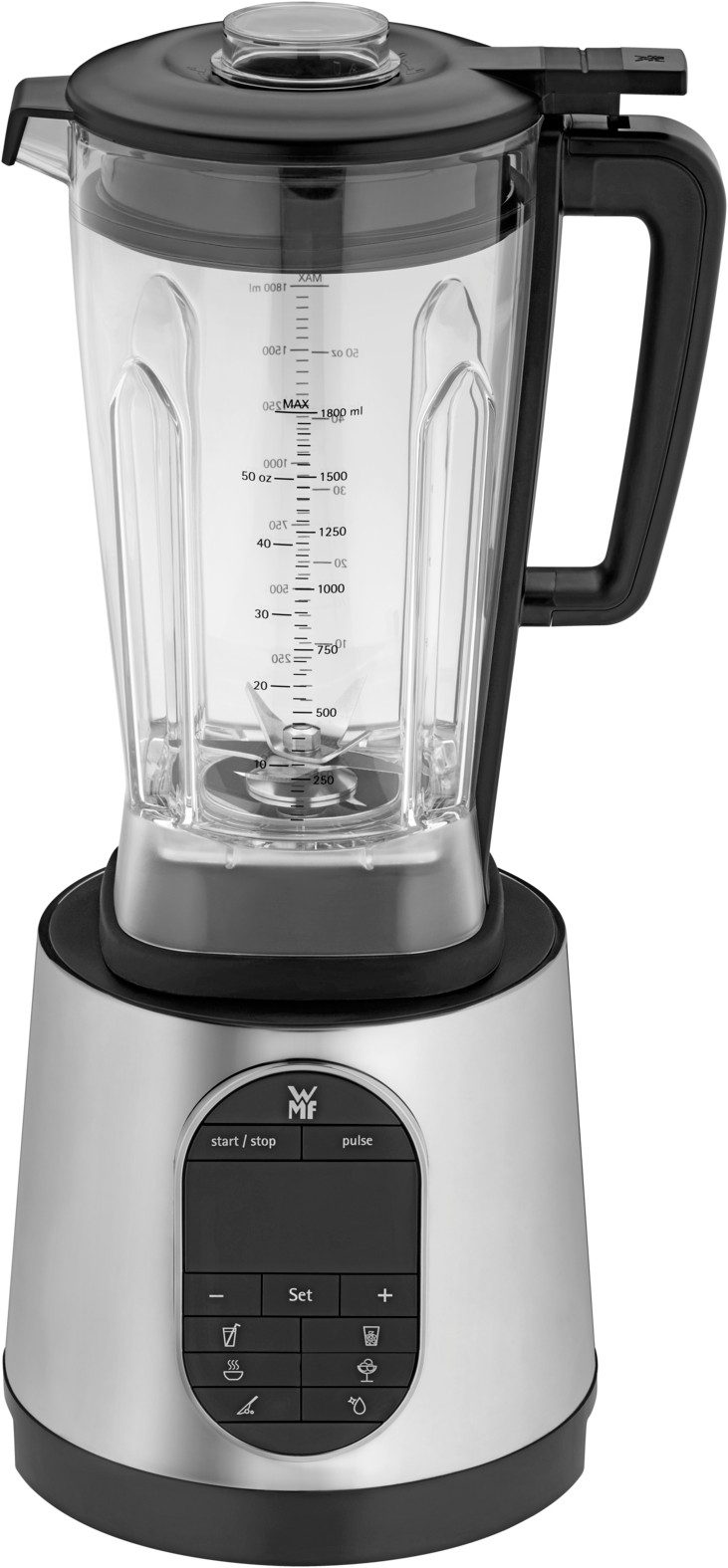 Der WMF Kult Pro Hochleistungsstandmixer 1,8 l verfügt über eine beeindruckende Leistung von 2,0 PS. Dies erlaubt eine mit 500 km/h extrem hohe Geschwindigkeit des 6-flügligen Edelstahlmessers und damit ein optimales Aufbrechen der empfindlichen Zellstrukturen von Obst und Gemüse. Automatik-Programme für Crushed Eis, Smoothies, Suppen und Sorbets vereinfachen deren Zubereitung. Individuelle Geschwindigkeiten für Aufstriche, Dips, Dressings, Püree, Babynahrung oder leichte Teige sind genauso integriert wie eine Pulse- und eine Reinigungsfunktion. Durch die praktische Nachfüllöffnung mit Dosierbecher können auch flüssige Zutaten direkt in den 1,8-LiterMixkrug aus bruchfestem und BPA-freiem Tritan eingefüllt werden. Und dank WMF Safety-Handling, ist das Mixen nur bei geschlossenem Deckel und korrekt aufgesetztem Mixkrug möglich. Hochwertige Ausführung mit Gehäuse aus Cromargan® und LED-beleuchtetem Bedienfeld.