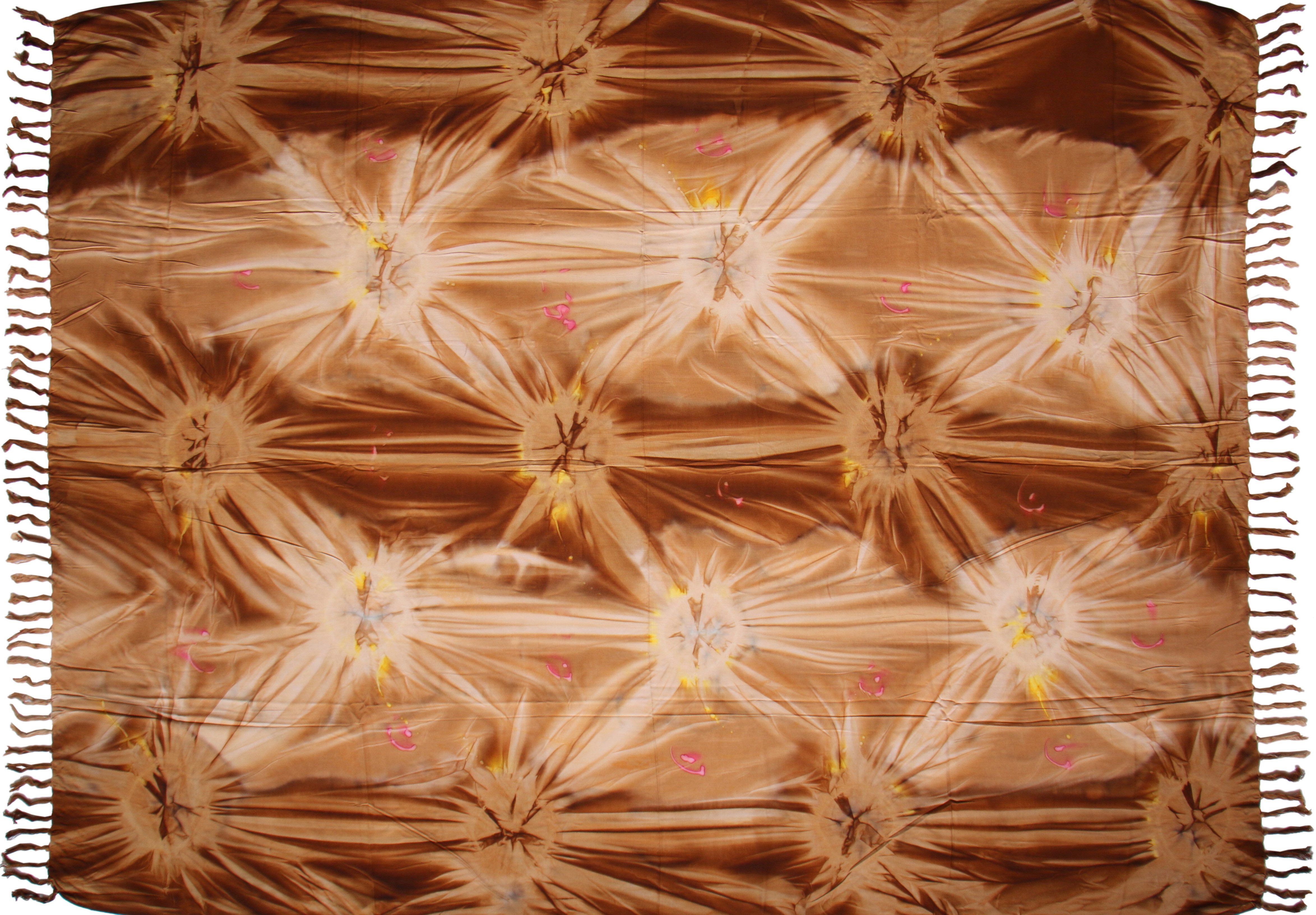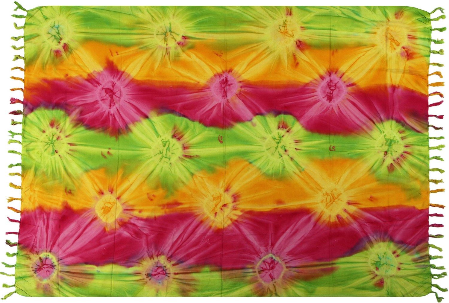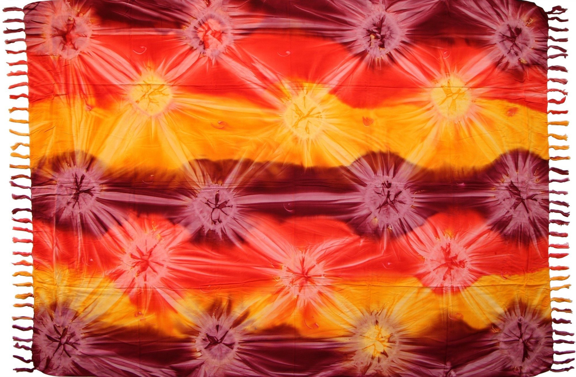 Diese bestens gearbeiteten Tücher aus Viskose wurden auf Bali von den weltbekannten balinesischen Künstlern in traditioneller aufwändiger Handarbeit gebatikt, bemalt oder bedruckt, weswegen es auch von Stück zu Stück zu leichten Farb- oder Musterabweichungen kommen kann. Unsere Sarongs sind in Standardgröße gefertigt, wodurch sie nicht nur als Wickelrock, oder als eigentlichlicher Sarong in vielfältiger Art gebunden (wie auf unseren Fotos zu sehen), sondern auch als leichtes Strandkleid getragen werden können. Sarongschnallen finden Sie auch in unseren Angeboten. Vor dem Gebrauch empfiehlt sich eine leichte Handwäsche bei 30-40 °C, um überschüssige Farbe zu entfernen. Nachher bleichen die Farben auch bei mehrfacher Wäsche nicht aus.