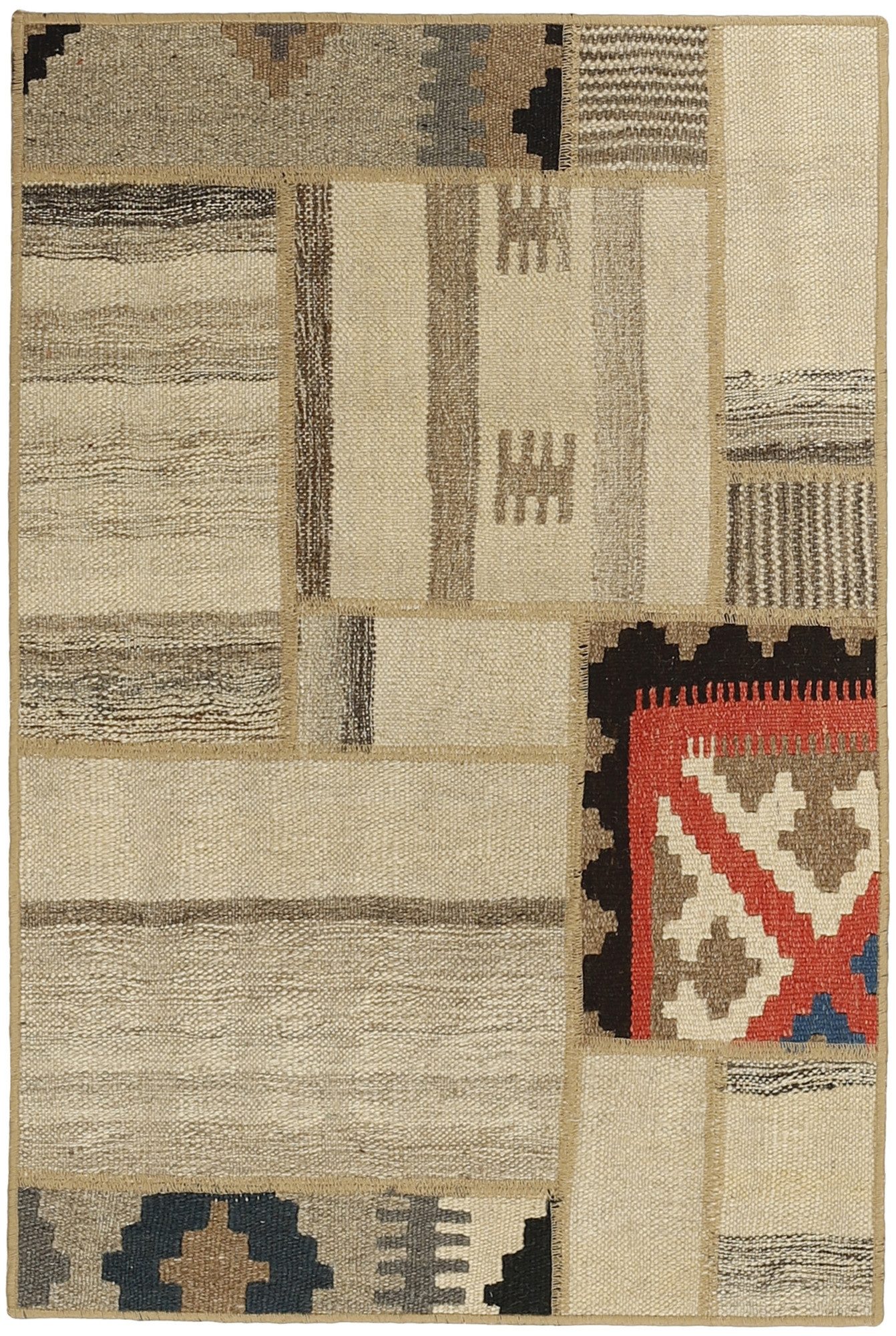 Teppich MY-RUG Perserteppich Patchwork Geometrische Muster creme 90x60cm
