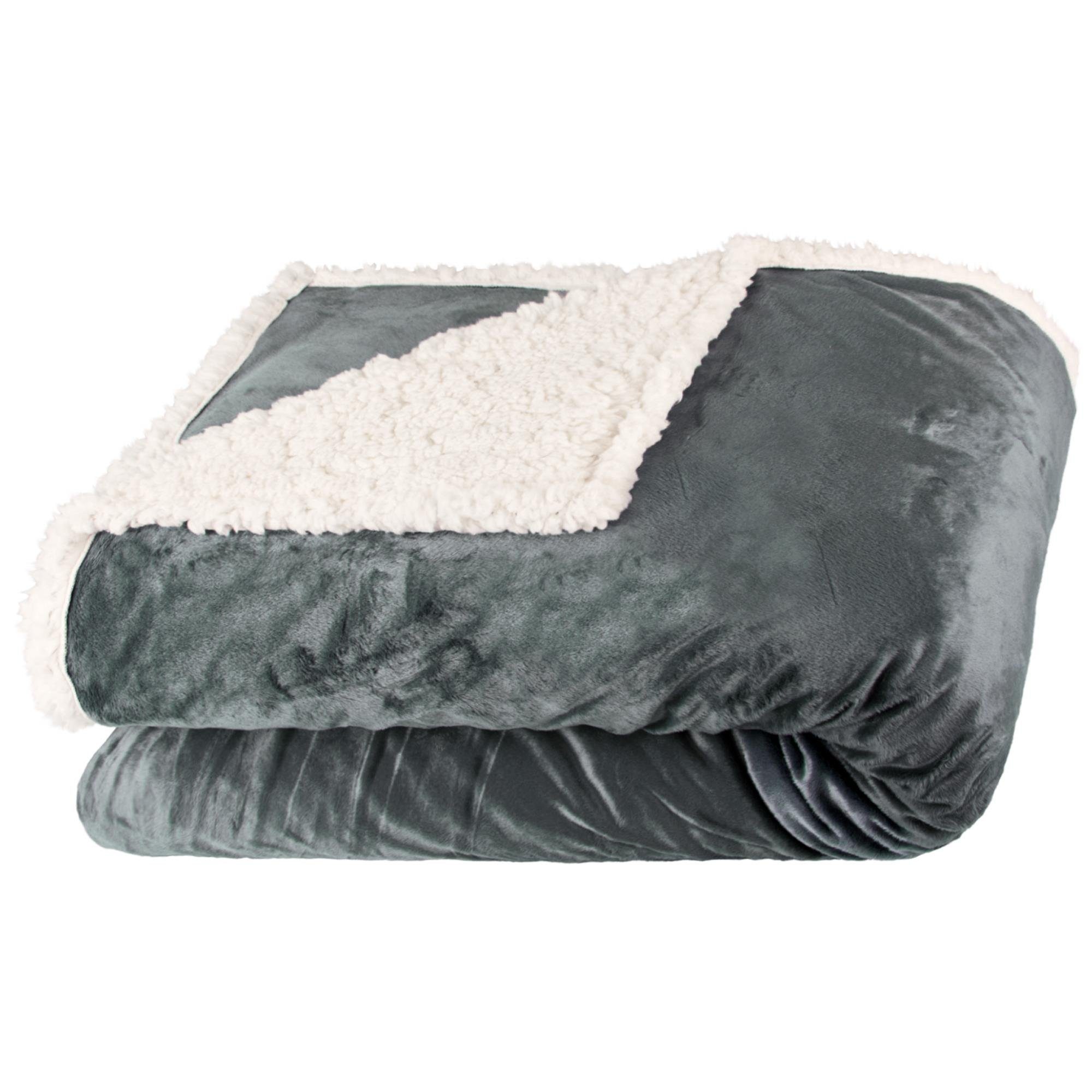 Super weiche Kuscheldecke mit Wohlfühlcharakter aus 100% Polyester - Oberseite aus zarter Nicki Qualität, Unterseite aus Sherpa (Lammfelloptik).