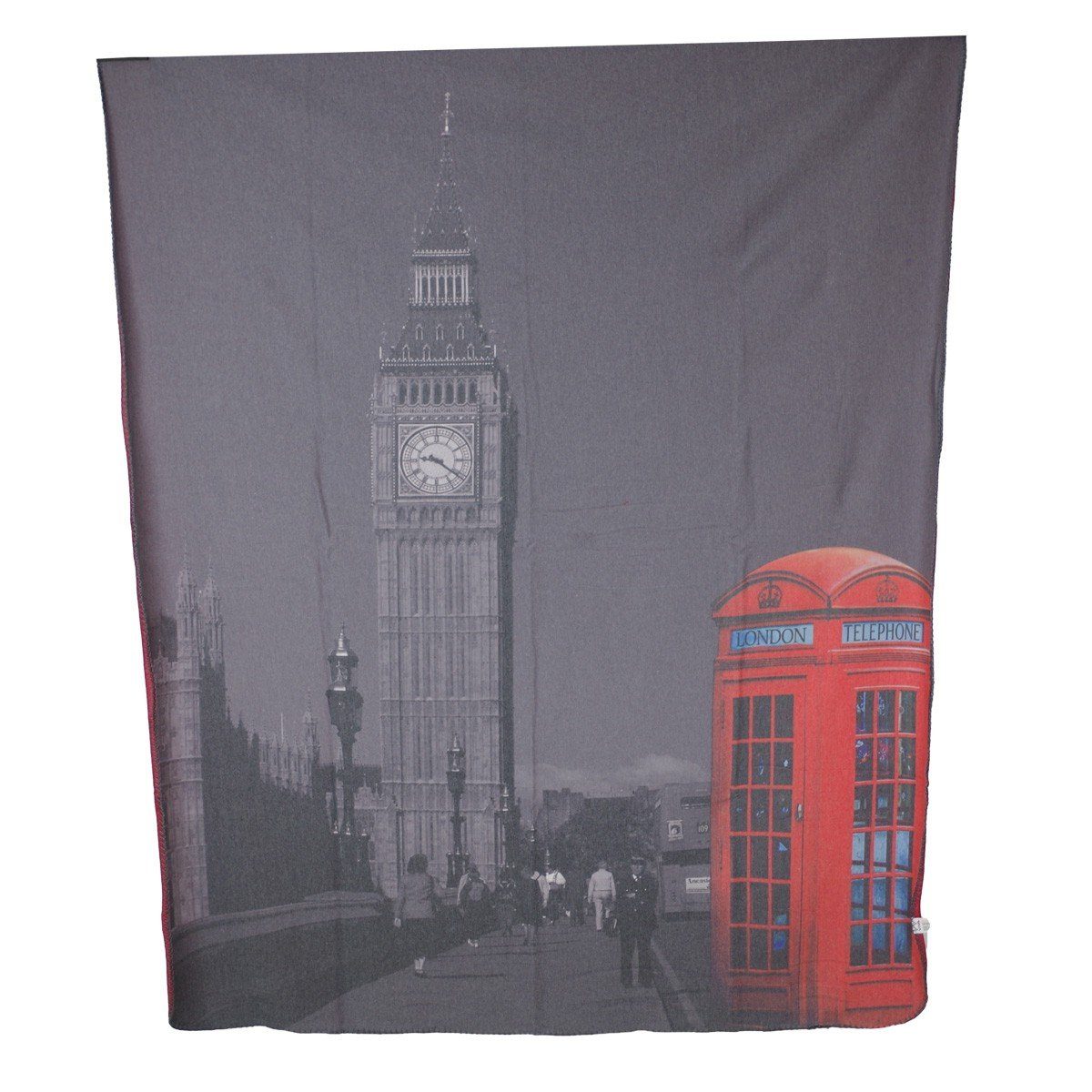 Diese dekorative Jerseydecke eignet sich ideal als Plaid, oder als optisch ansprechende Decke für den Übergang. Gerade in der dunklen und kalten Jahreszeit hat man meist ein erhöhtes Wärmebedürfnis, hier sorgt unsere schöne und kuschelige Tagesdecke mit Städtemotiven von London oder New York schnell für Behaglichkeit. Die schöne kuschelige Innenfläche aus Fleece ist wirklich weich und anschmiegsam und sanft im Griff. Selbstverständlich ist die Wohndecke bis 30°C waschbar. Die Dekorseite aus Baumwolljersey ist hochwertig bedruckt und überzeugt durch seine harmonischen Motive. Der Rand wurde mit einer farblich passenden und sehr schönen Ziernaht versehen.
