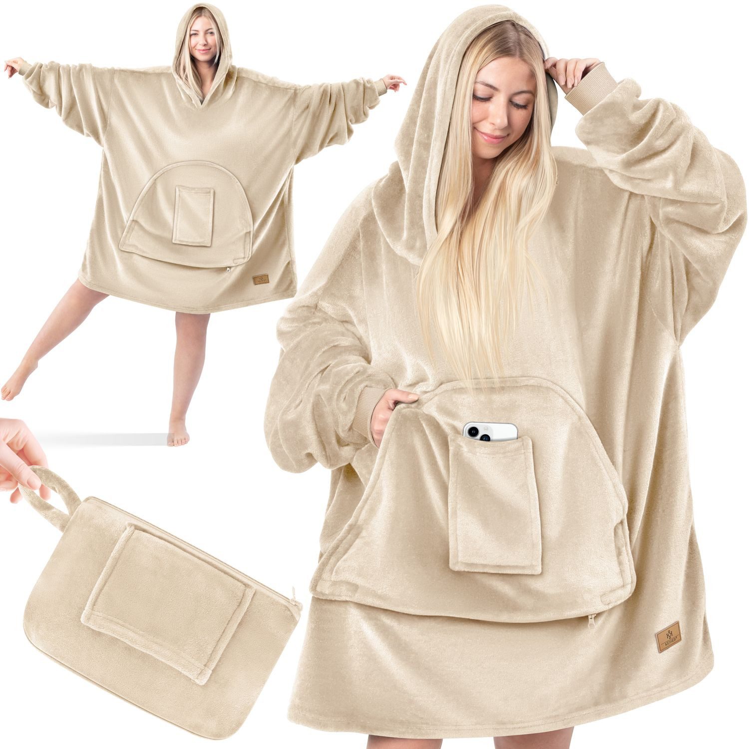 KESSER Kuschelhoodie vielseitig und atmungsaktiv mit Wendedesign, isolierten Stretch-Ärmeln, kuscheliger Kapuze, hautfreundlichem Plüschstoff, fusselfrei und maschinenwaschbar, ideal als Geschenk, perfekt für Zuhause oder unterwegs mit XXL Fronttasche
