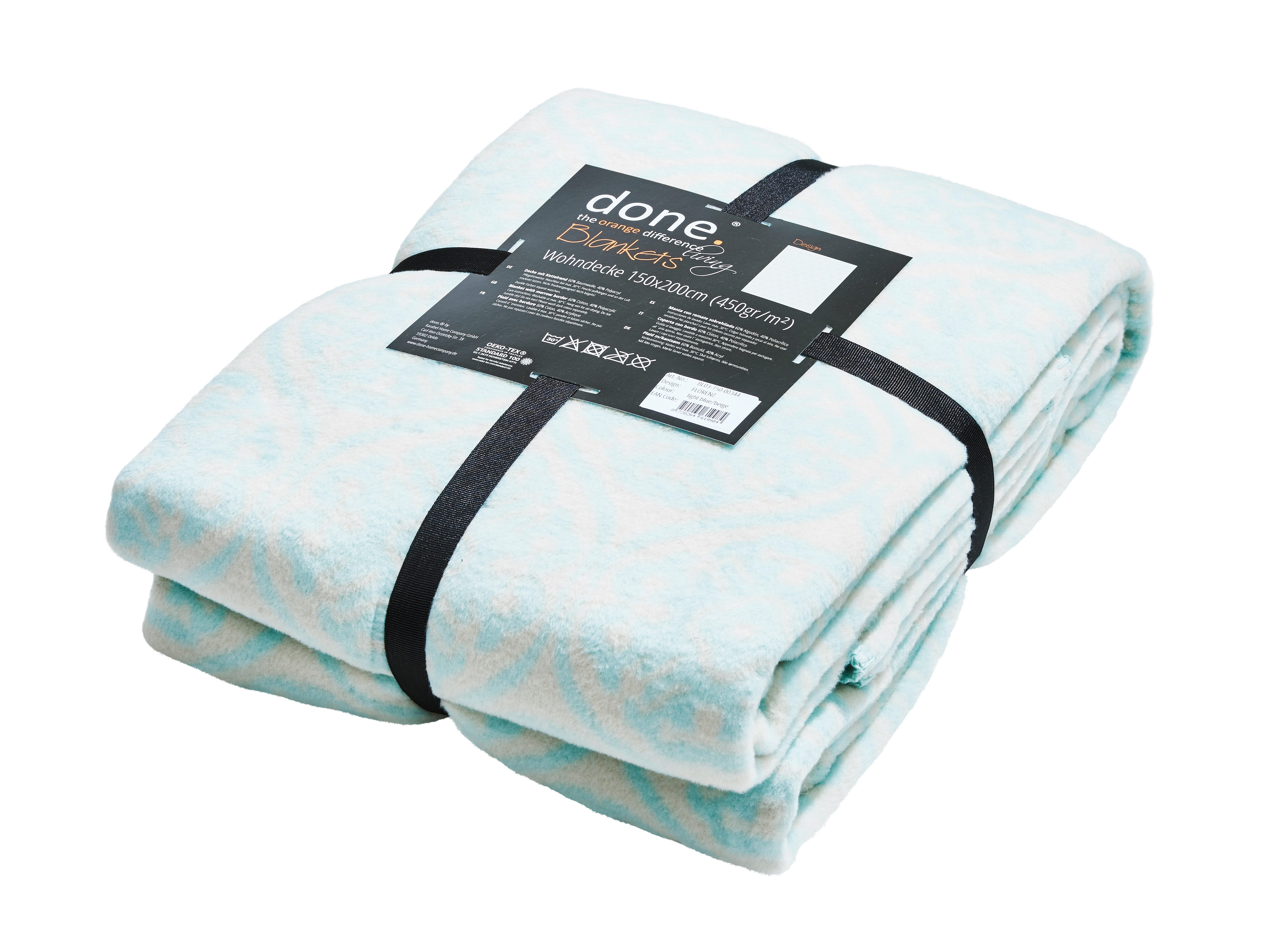 Hochwertige Kuscheldecke mit elegantem mintfarbenem Muster – zeitlos und stilvoll.