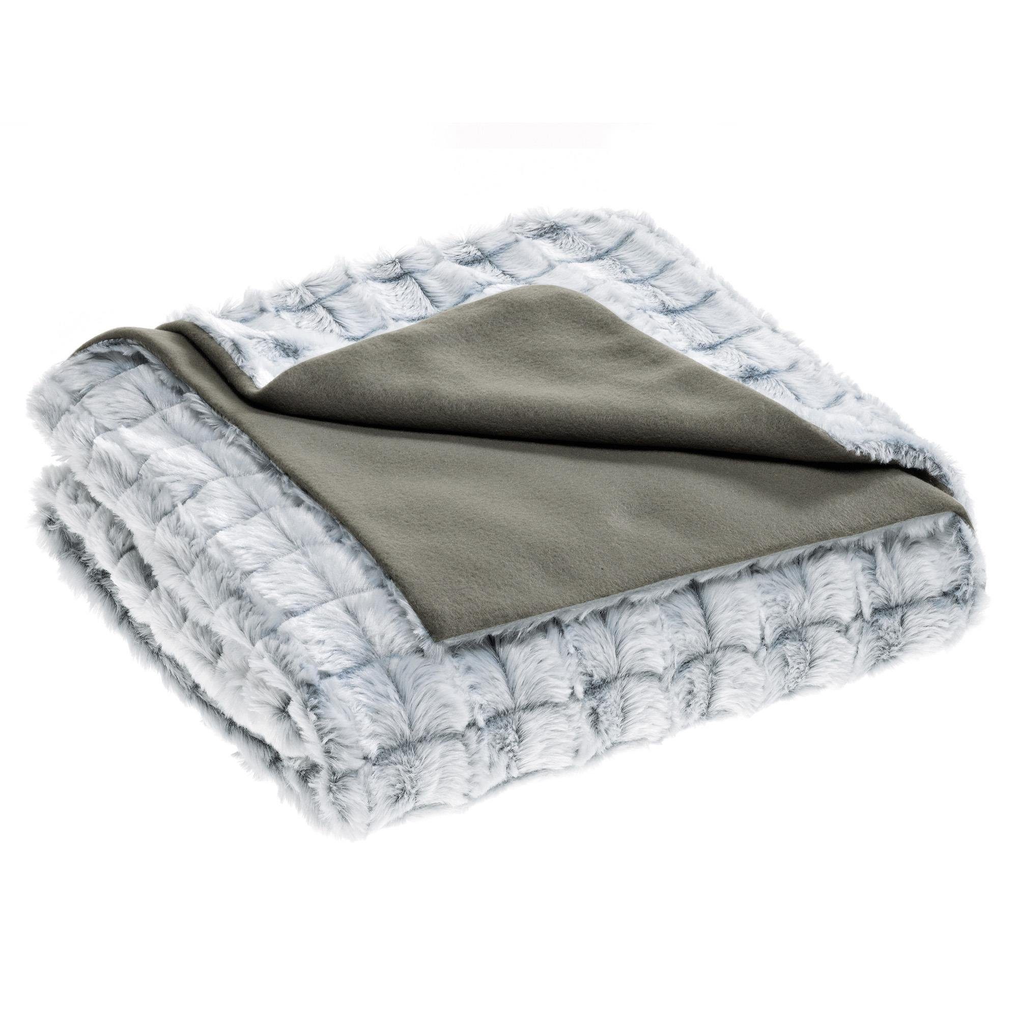 Entdecken Sie unsere außergewöhnlich dekorative Wendedecke Masha aus 100% Polyester. Super weiche, flauschig wärmende Polar-Fleece Qualität auf der Unterseite und Fell-Imitat mit Wohlfühlcharakter zum Kuscheln auf der Oberseite. Die Kuscheldecke ist mit einer Satinband-Schleife verpackt und somit auch perfekt als luxuriöses Geschenk geeignet.