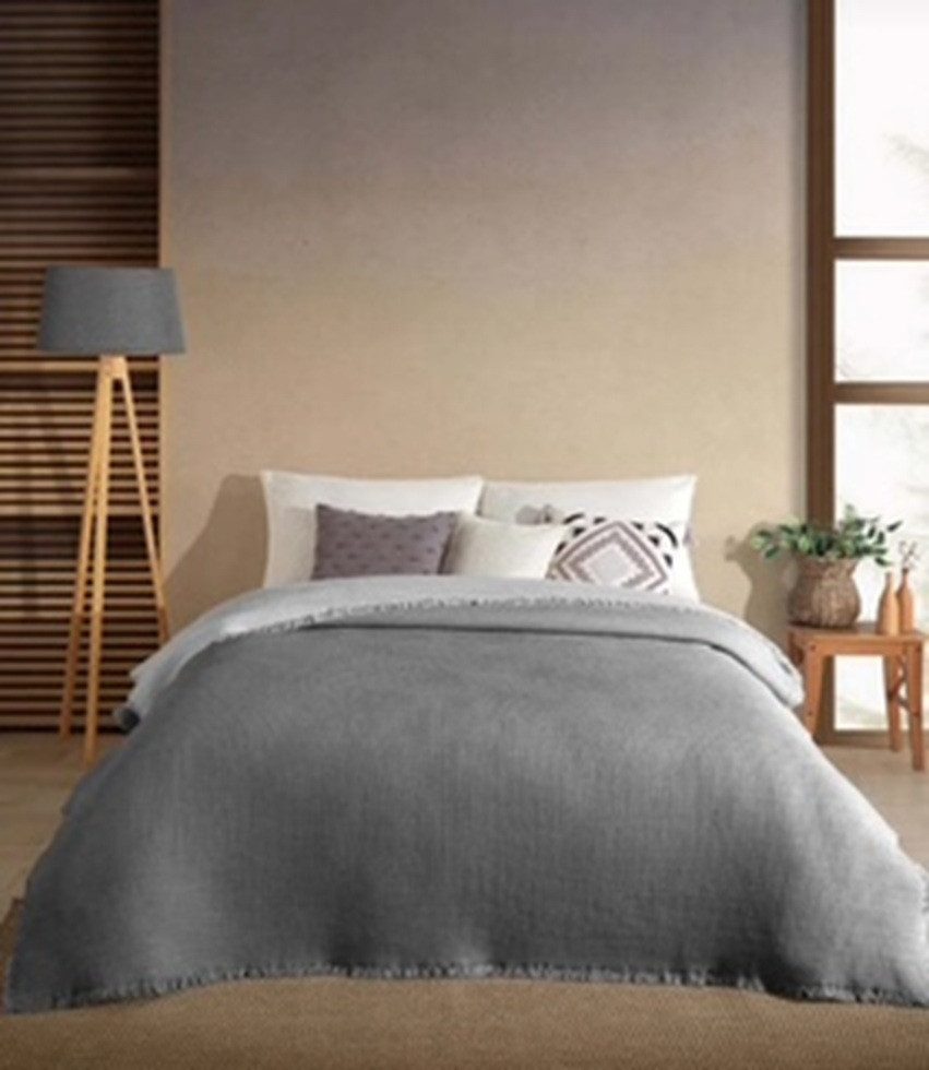 Wohndecke Musselin Decke Double Face Buse in Grau/Beige