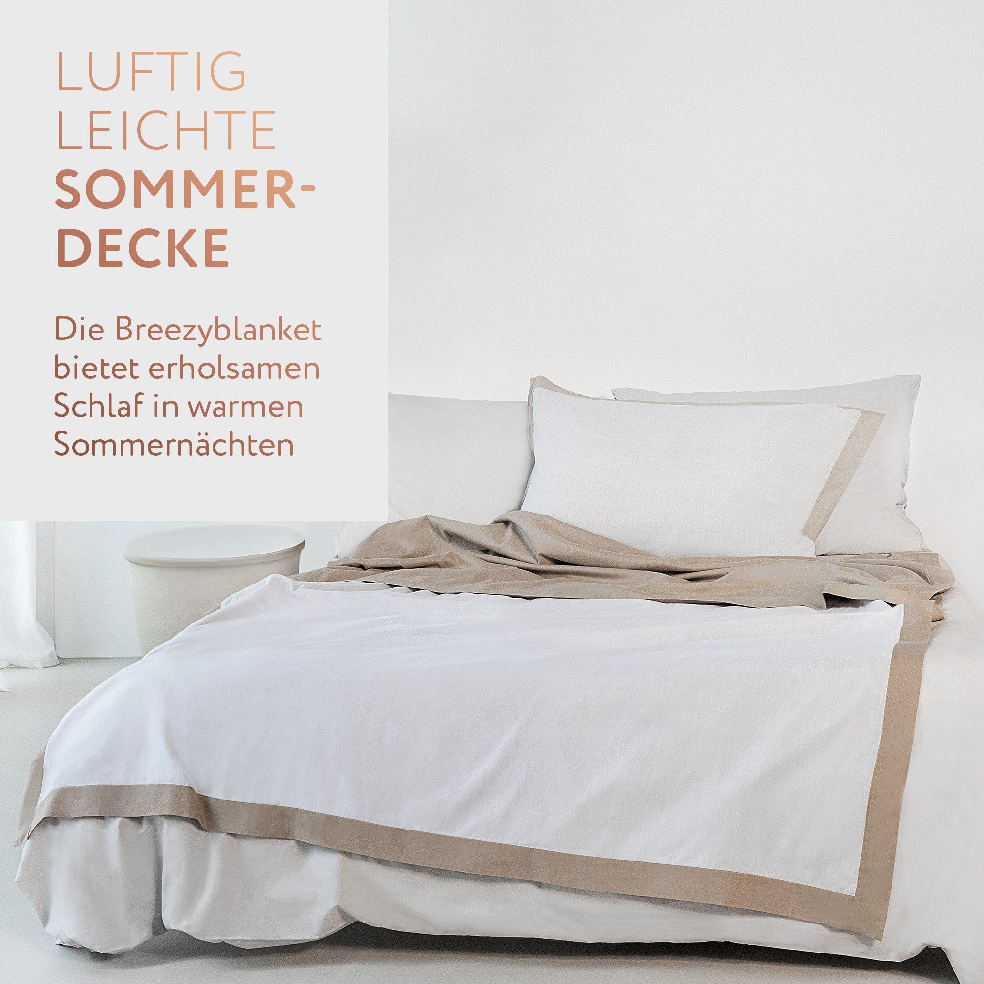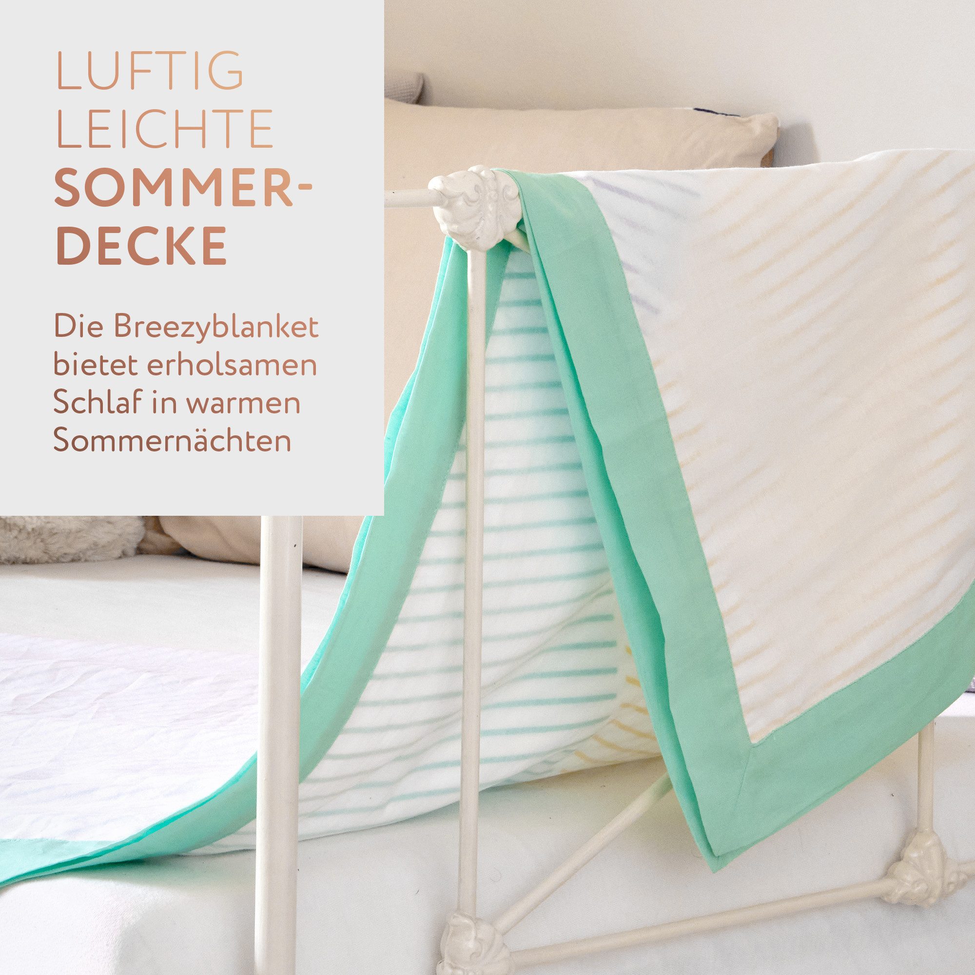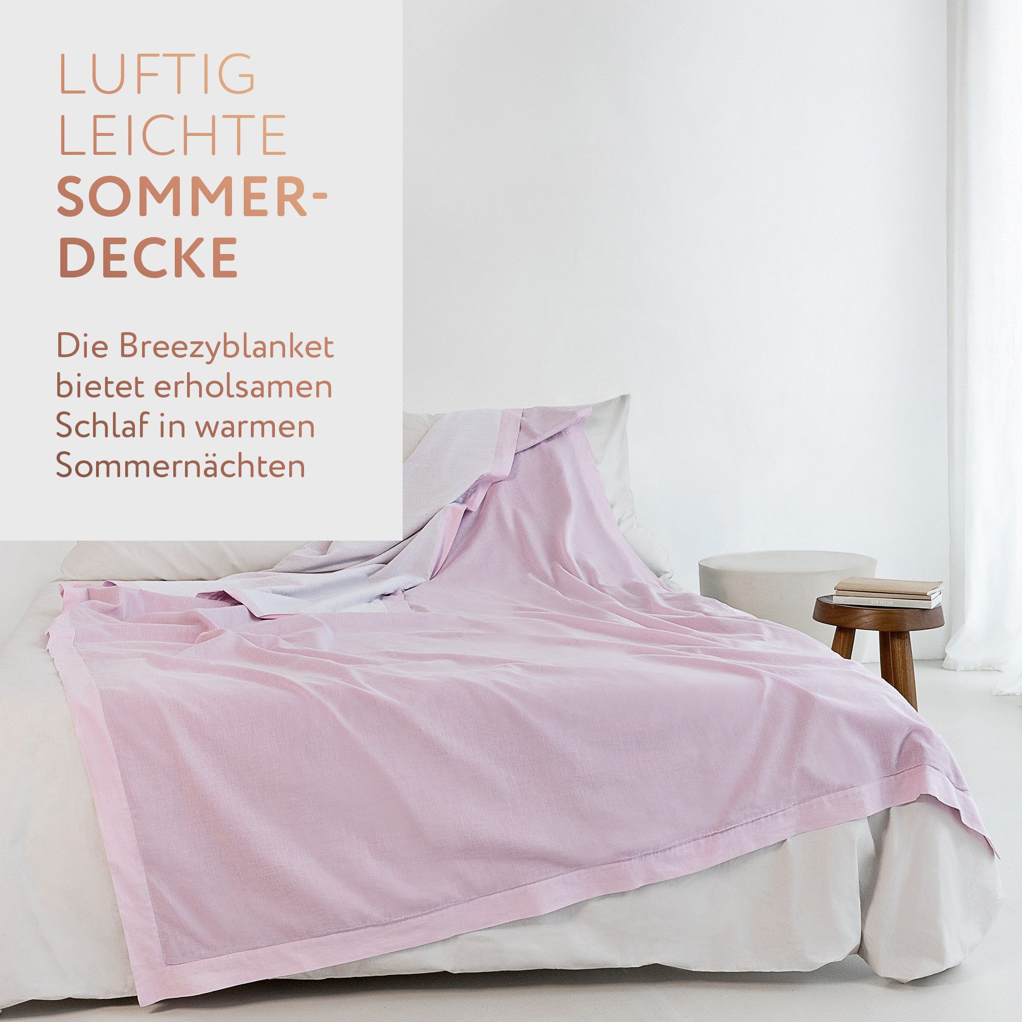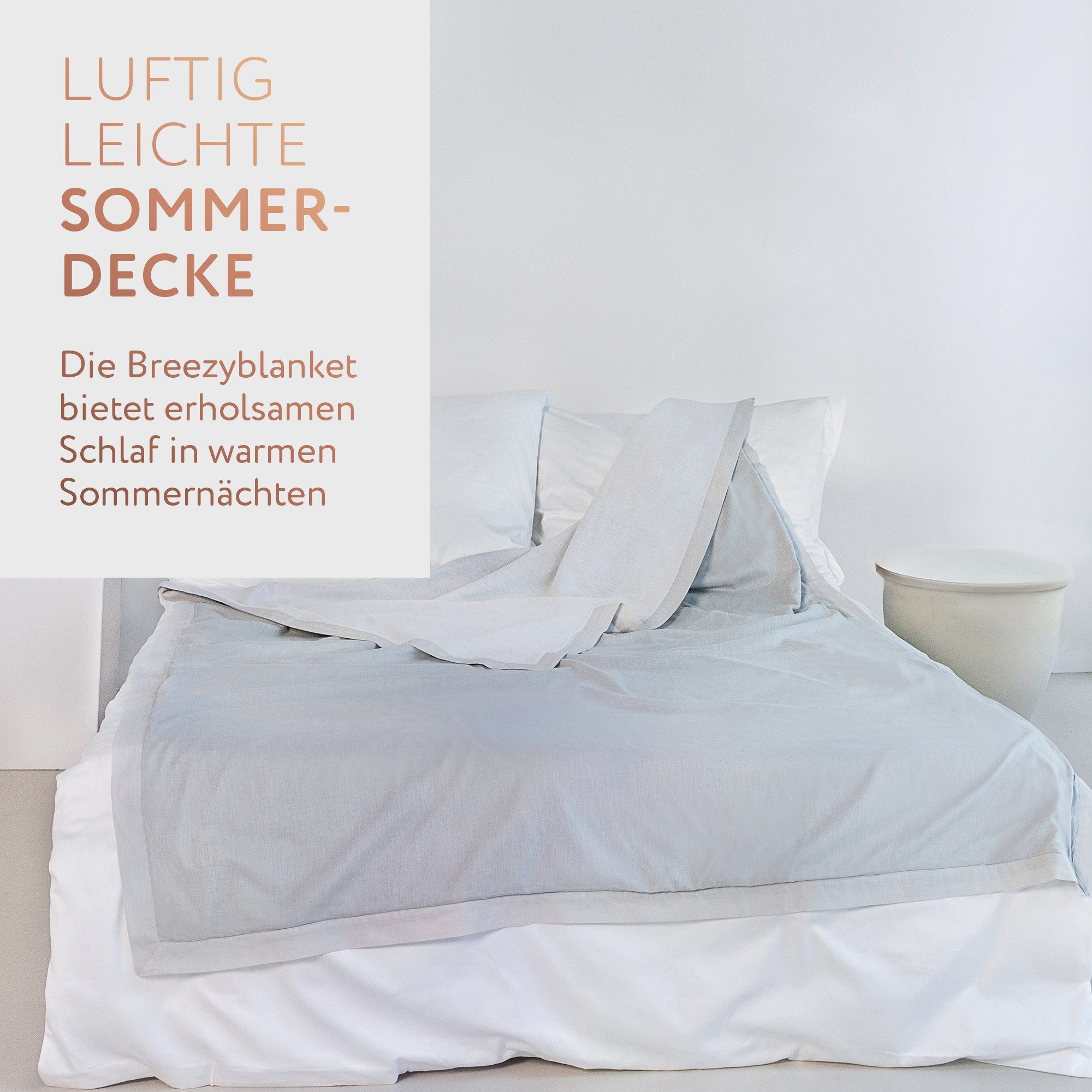 Luftiger Komfort dank AirFlair-Effekt Die natürlichen AirFlair Klimazonen temperieren den Körper optimal und sorgen jederzeit für luftig leichte Wohlfühlmomente. Drei Lagen Leichtigkeit – für entspannte Nächte ohne Wärmestau 3 feine Schichten aus Baumwolle schmiegen sich luftig leicht an den Körper und sorgen damit für das perfekte Wohlfühlklima. Sie verhindern Wärmestaus und bieten beste Atmungsaktivität. Fürs echte Leben gemacht – maschinenwaschbar und pflegeleicht Die Breezyblanket ist nach der Hand- oder Maschinenwäsche schnell wieder einsatzbereit, egal ob auf Reisen, auf der Couch oder im Bett.