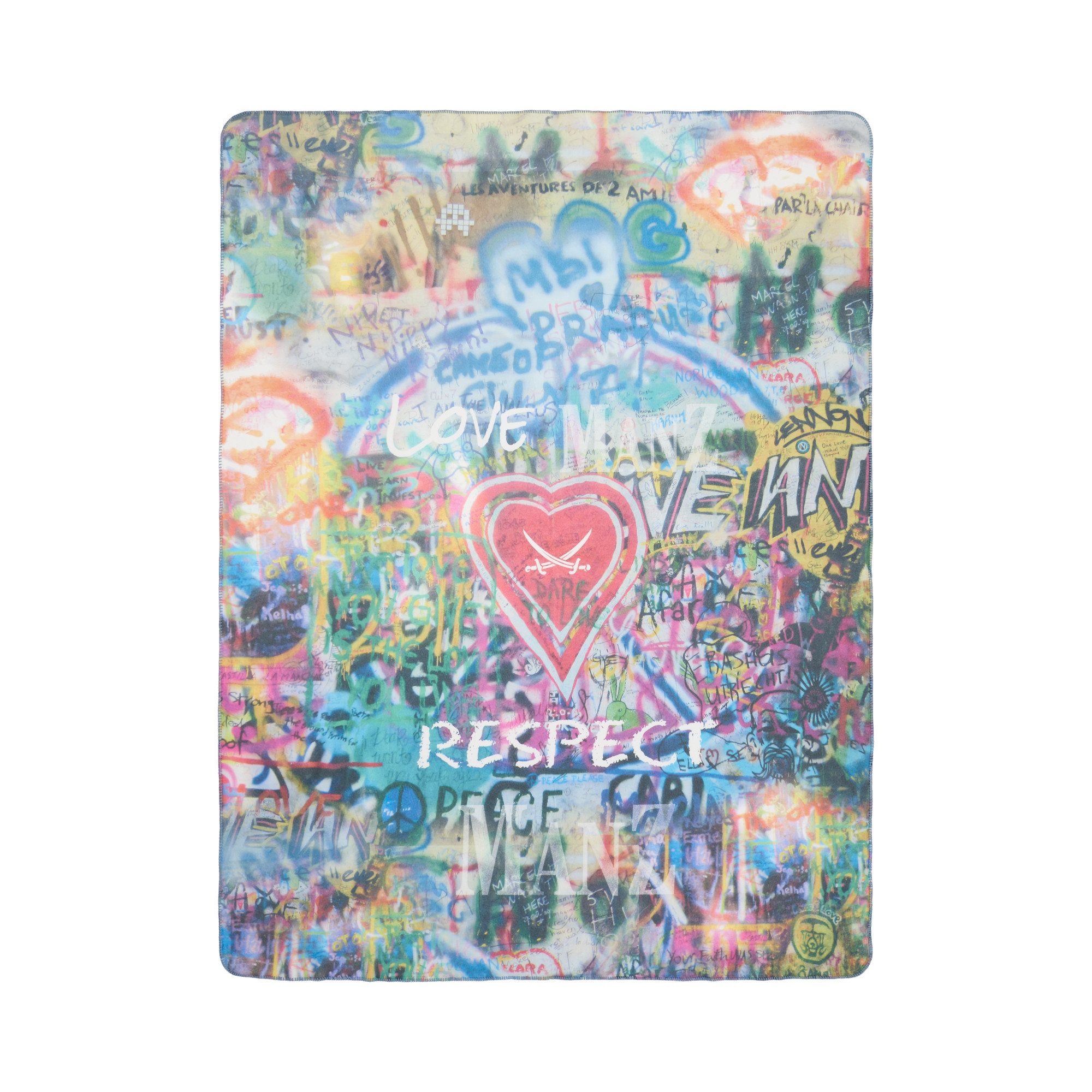 Die Sansibar „Respect“ Kollektion im Graffiti-Style überzeugt durch ihr einzigartiges und farbenfrohes Design. Jedes Item vom Kissen bis zur Garnitur erweist sich als raffinierter Eyecatcher und kreiert einen äußerst modernen Look in Wohn- und Schlafräumen. Die Kuscheldecke aus edlem Polarfleece fühlt sich angenehm weich auf der Haut an, ist anschmiegsam und wärmend. Sie eignet sich hervorragend als Heimdecke, Tagesdecke, Couchdecke und als stilvolles Accesscoire.