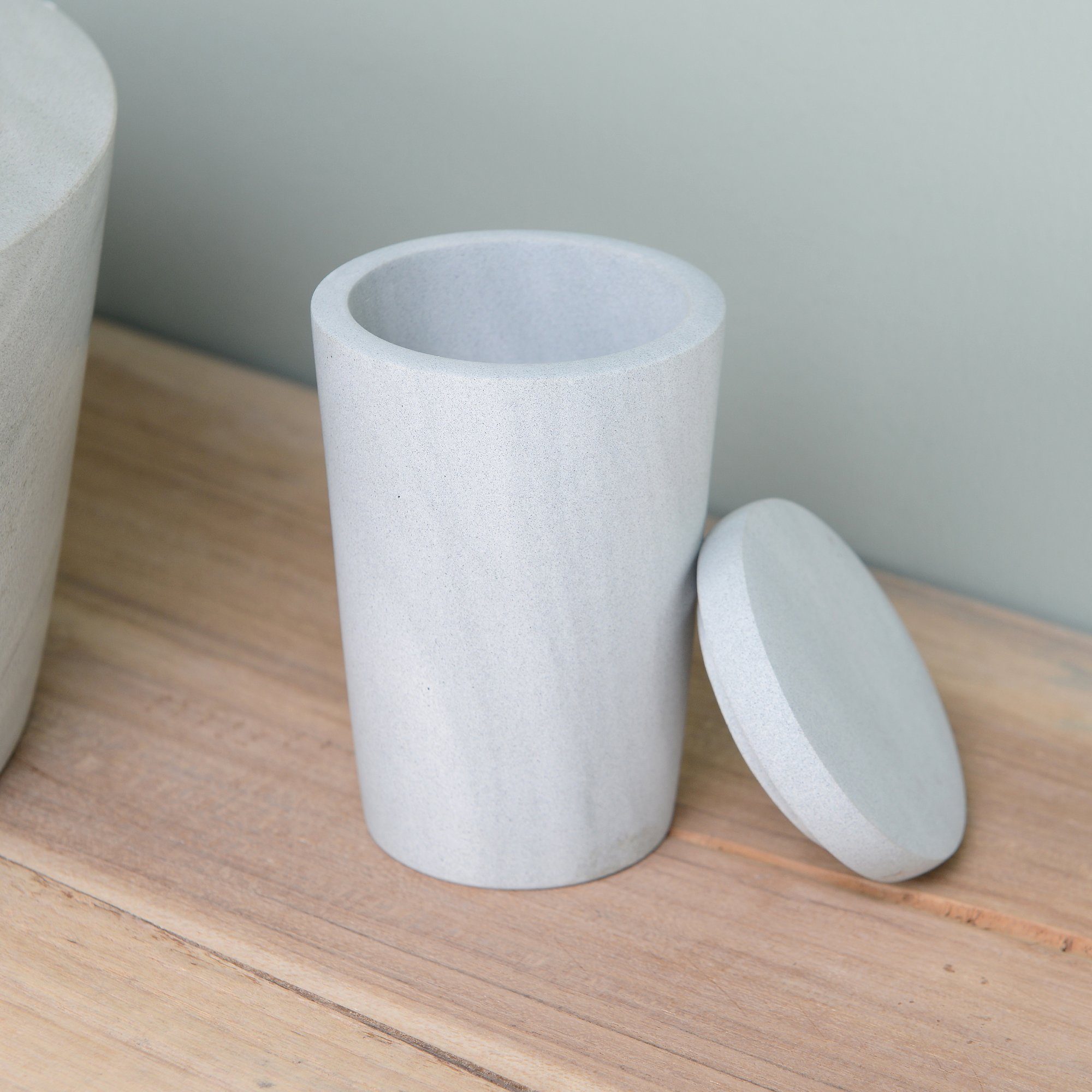 Der Becher ist aus einem Sandsteinblock gefräst, von Hand geschlagen, poliert und versiegelt worden. Unterschiede in Schattierung und Struktur sind das Zeichen für die Individualität eines jeden Aufbewahrungsdose.
