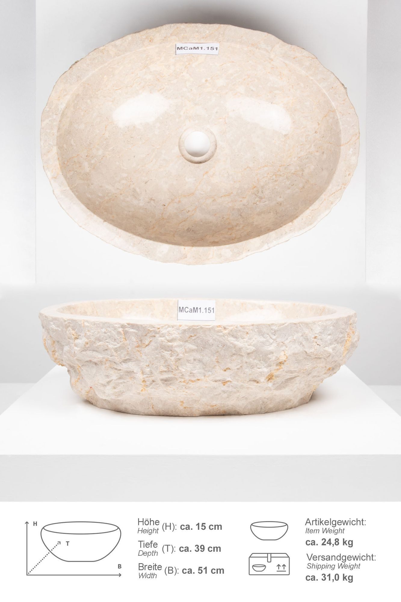 Das Waschbecken ist innen von Hand poliert und außen ursprünglich und naturbelassen . Unterschiede in Marmorierung, Schattierung und Struktur sind das Zeichen für die Individualität eines jeden Waschbeckens. Bitte beachten Sie, dass unsere Waschbecken ohne Überlauf gearbeitet sind.