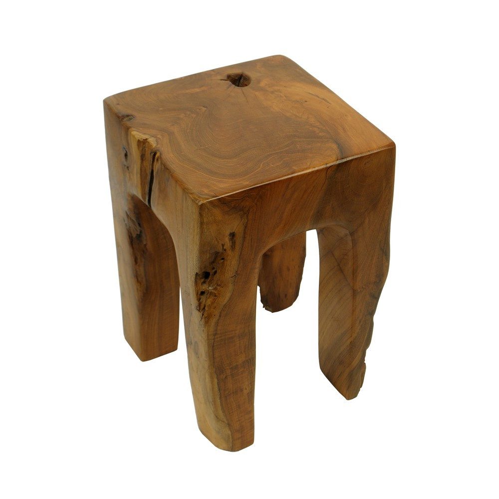 Zeitloser Teak-Hocker, aus kontrolliertem indonesischem Plantagen-Anbau . Dieses Möbel ist handbearbeitet, einzigartig in Form und Farbe. Risse und Löcher sind der Fingerabdruck eines jeden Baumes und unterstreichen ihre Individualität.