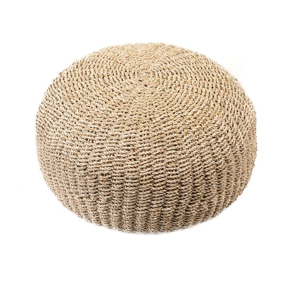 Der Moderne Sitz-Pouf aus Seegras hat eine grobgestrickte Optik. Er ist leicht und komfortabel, und somit kann er an jeder beliebigen, freien Stelle platziert werden.