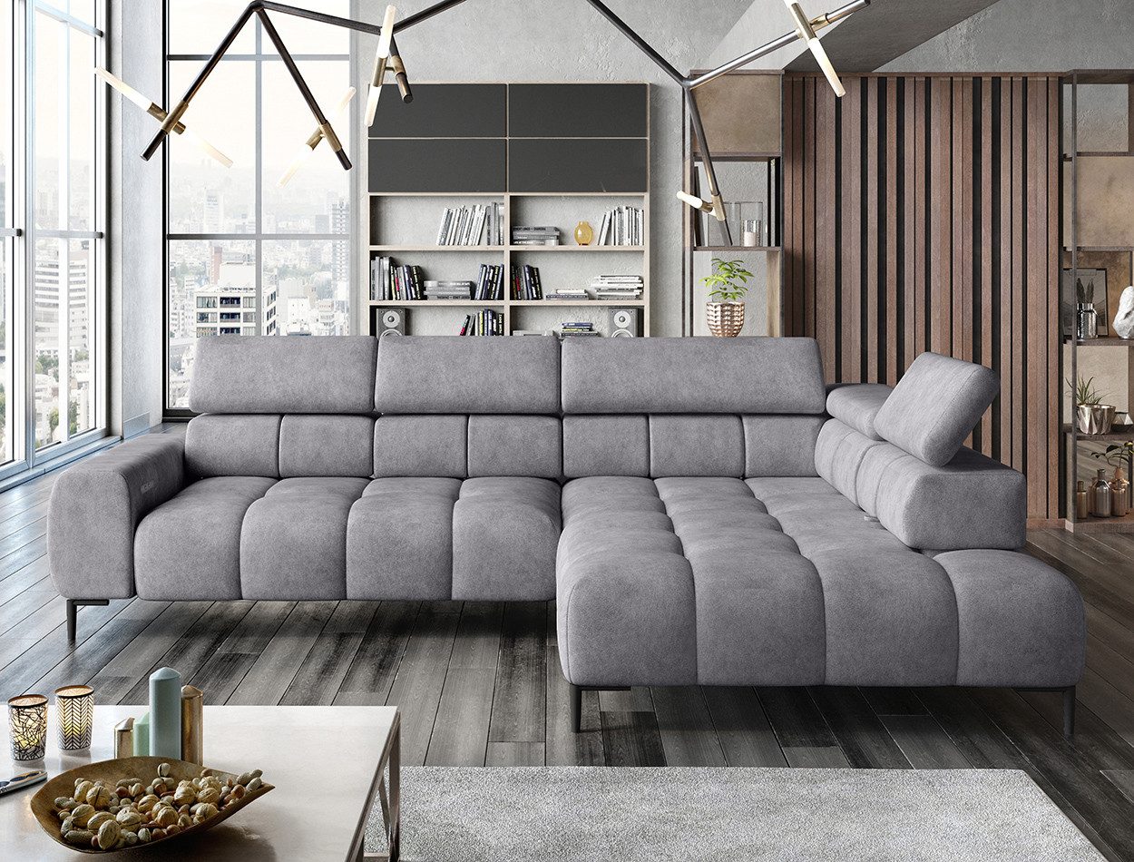 Mit der üppigen Ausstattung bietet die Polsterecke von Wohnklusiv jede Menge zusätzlichen Komfort. Mit den 5 verstellbaren Nackenstützen und der hochwertigen elektrischen Sitztiefenverstellung können Sie bequem Ihre perfekte Sitzposition einstellen. Durch Knopfsensoren lässt sich der Sitzbereich elektrisch um ca. 25-30 cm nach vorne und wieder zurück fahren. Die Couchgarnitur ist auf designorientierten und stabilen Metallfüßen aufgebaut und hat eine angenehme Stellhöhe.