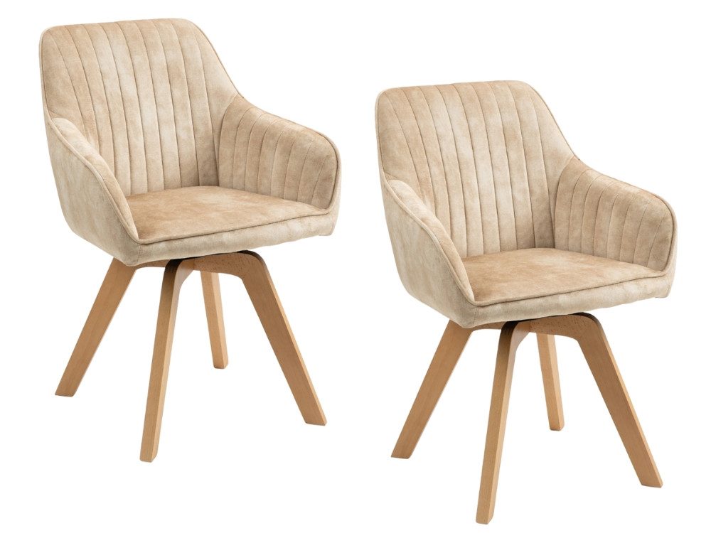 SEBA Drehstuhl Gail 180° almond Holzfuß Buche, 2er SET